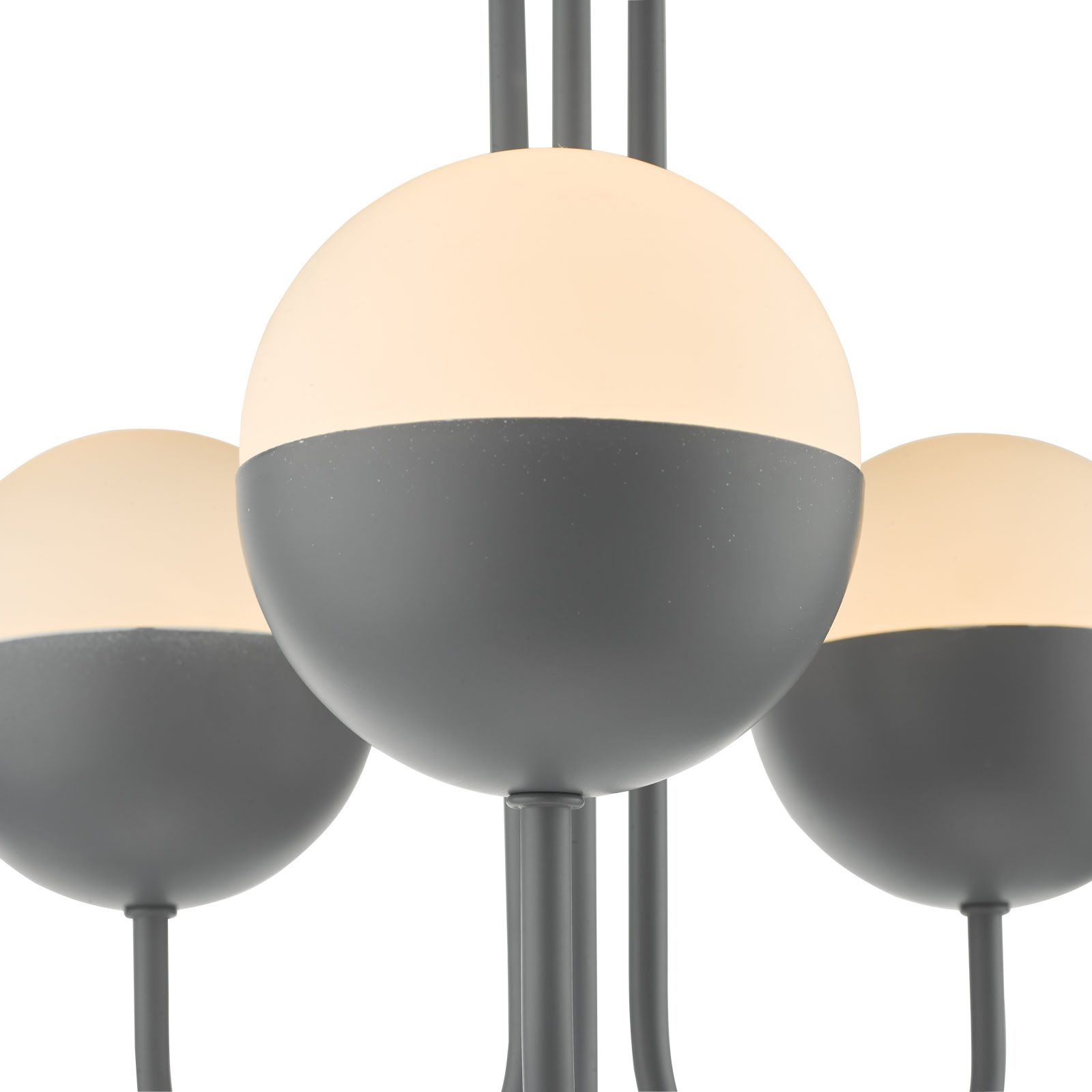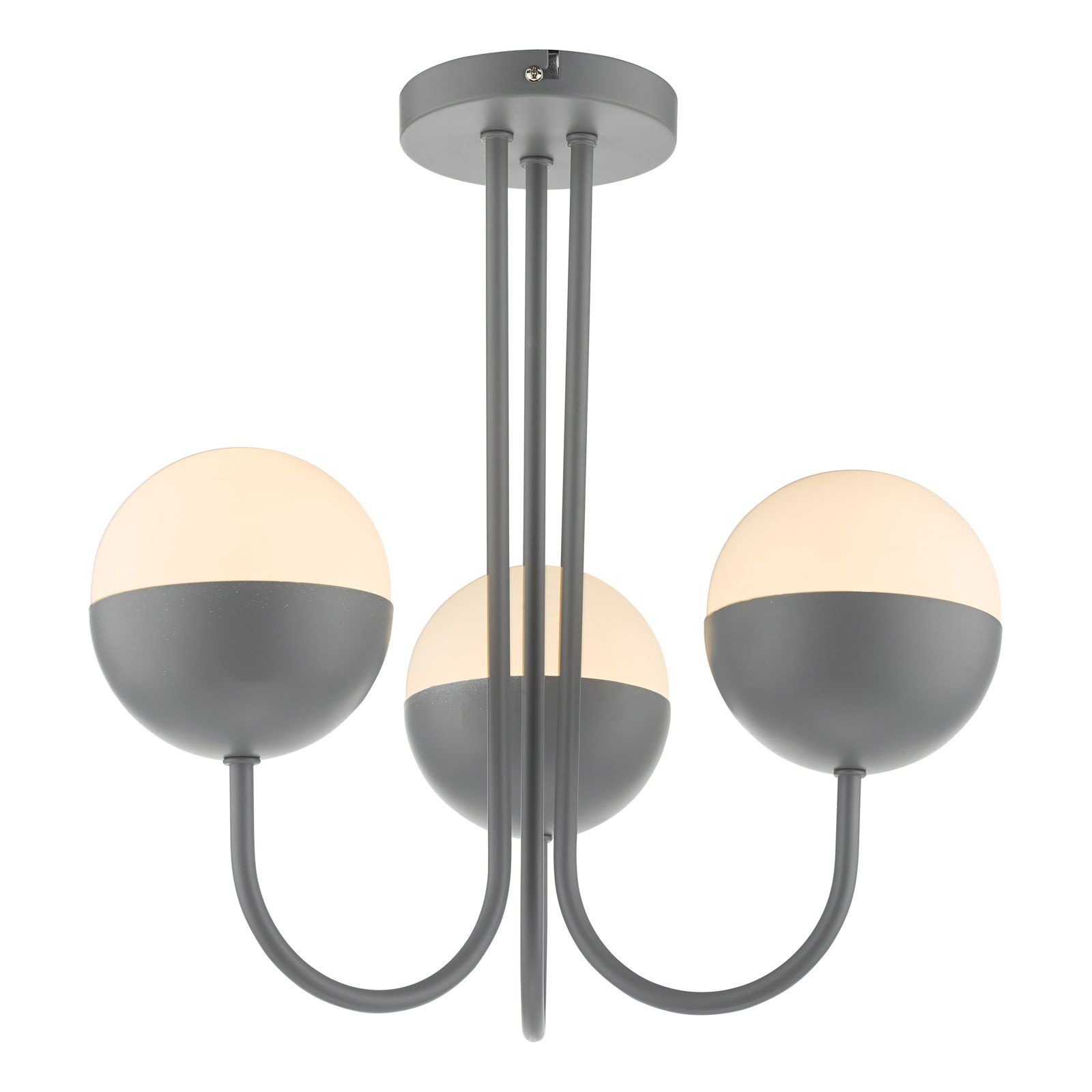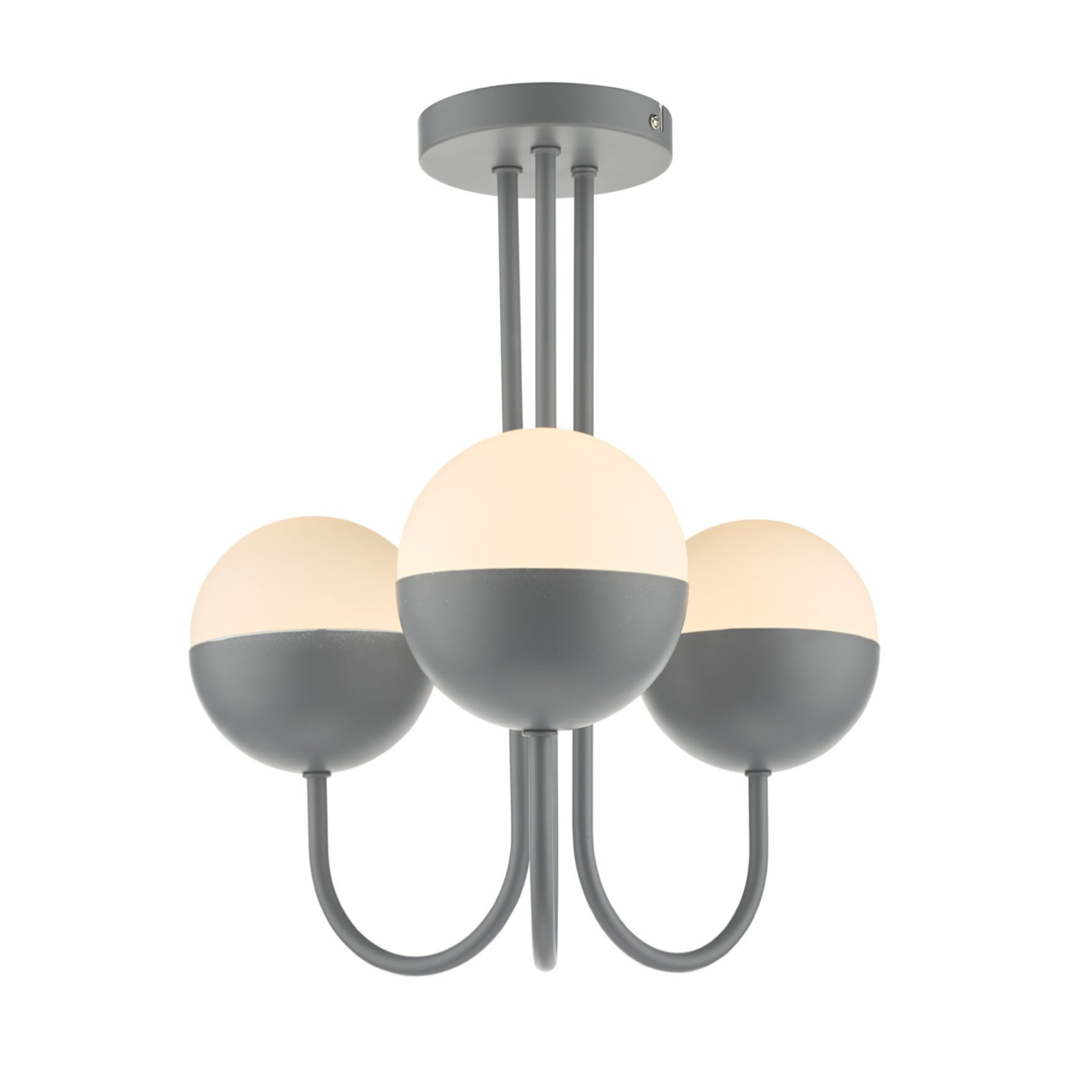 Curve - Opal Ball Matt Grey Semi Flush Light - Like a game of two halves, the ball-shaped three-light semi flush pendant is an ultra-contemporary fitting, with opal white glass uppers, designed to diffuse light, above powder-coated matt grey lower halves. Semi-flush fittings are popular as they sit closer to the ceiling than a pendant so are suitable for lower ceilings and smaller rooms.