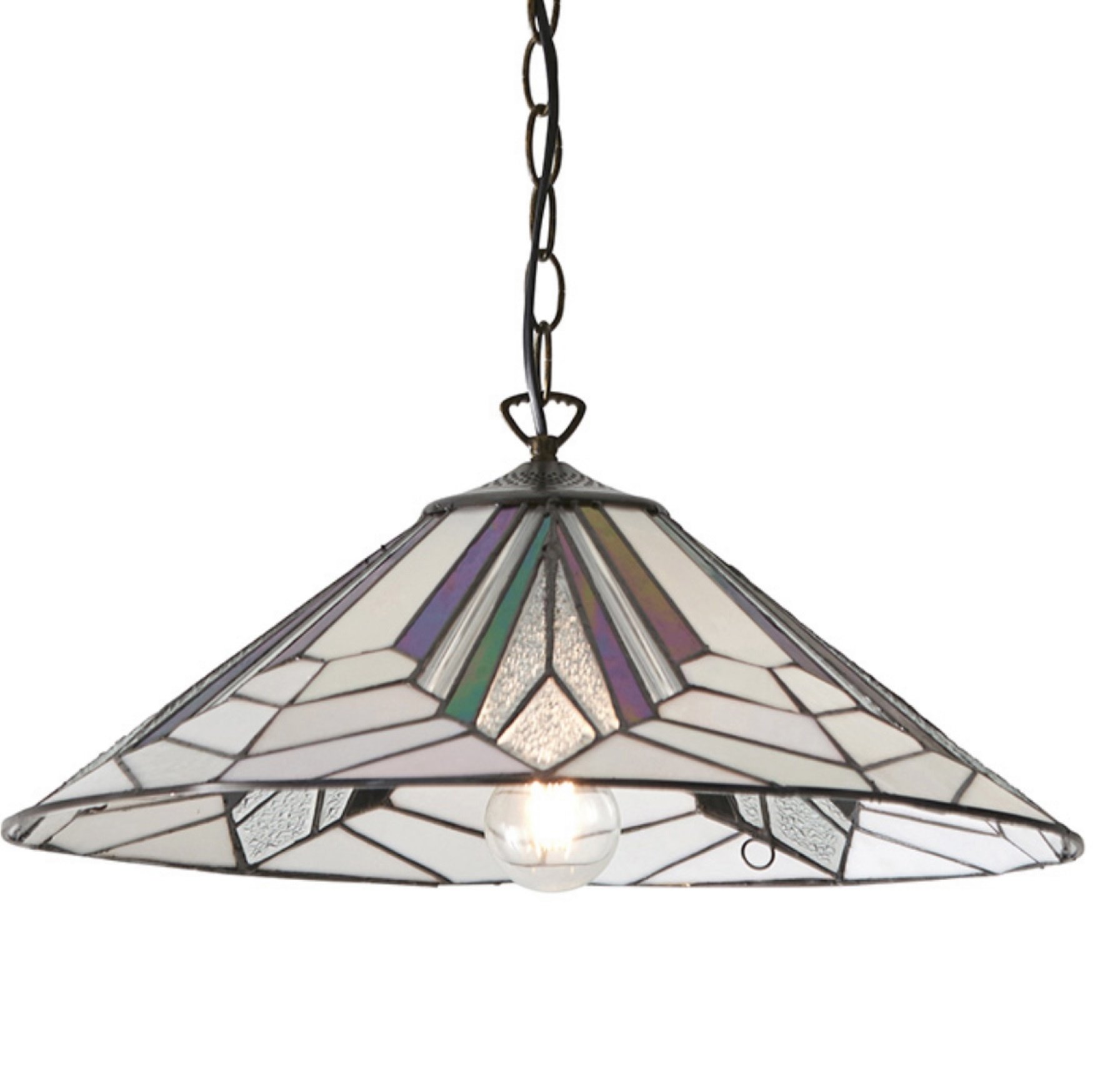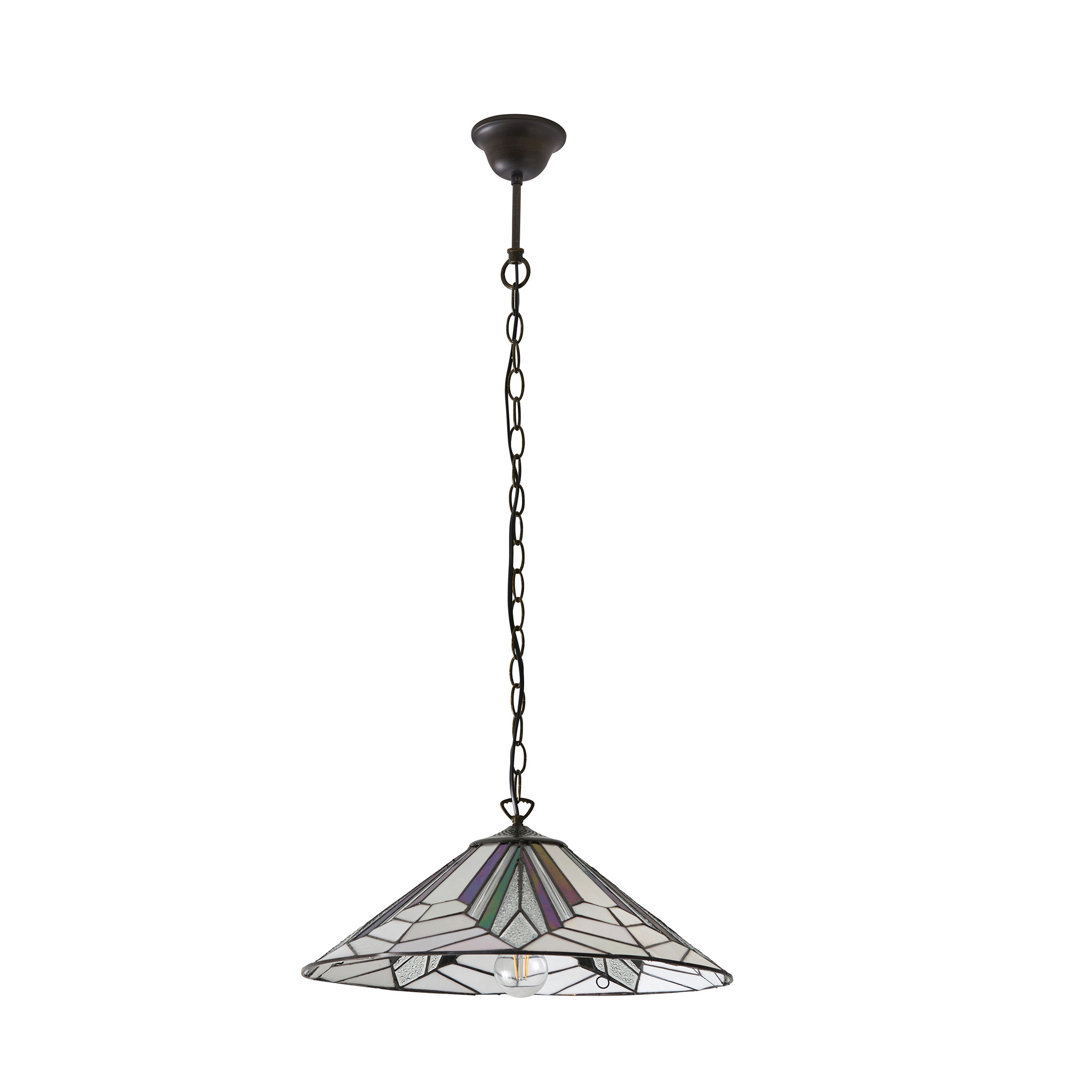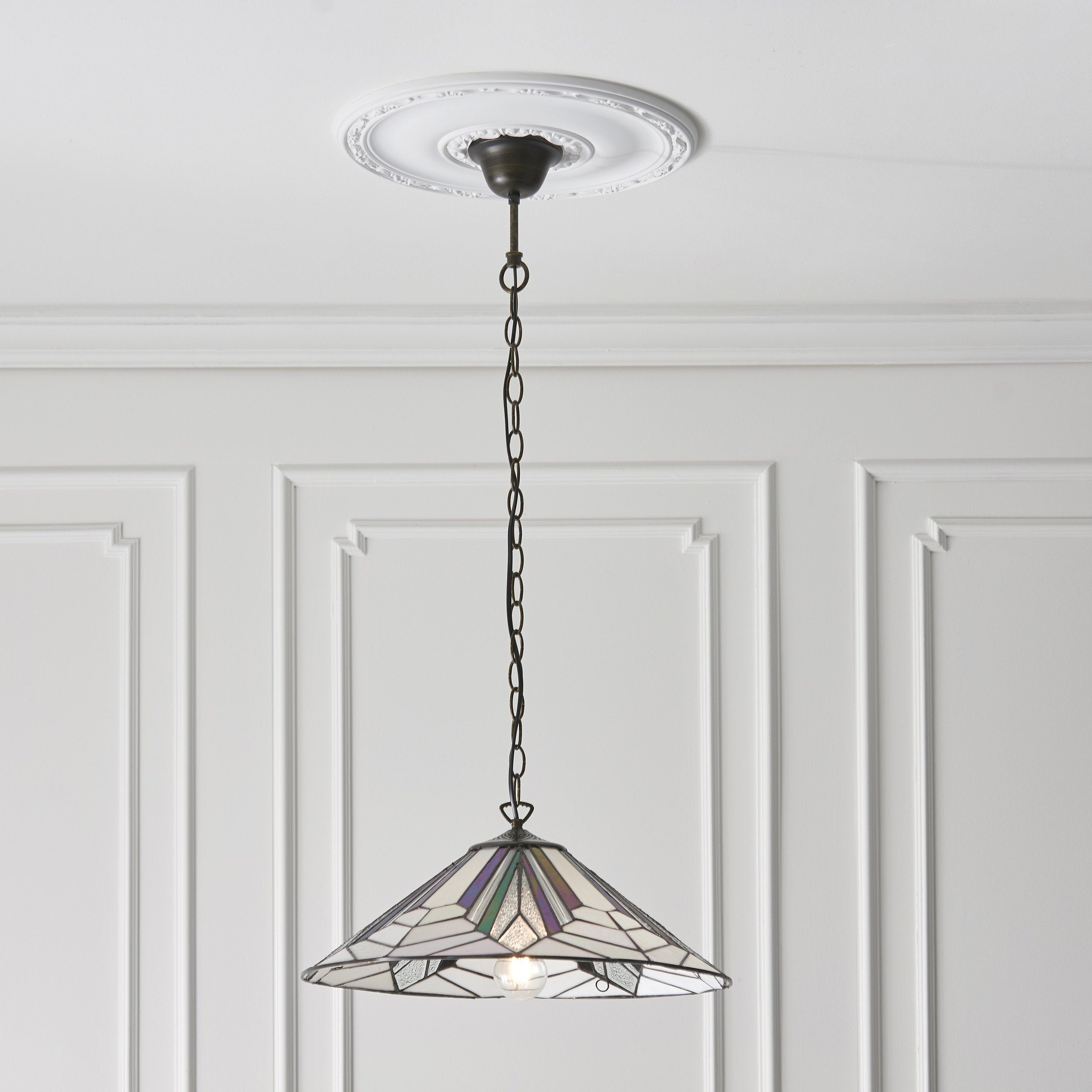 The Tiffany ceiling light pendant certainly makes a splendid impact to a room. True to the Art Deco style, the pendant shade features, textured, bevelled glass laid in a repetitive pattern that brings symmetrical delight. The finer details are also not to be missed with the dark bronze finish the perfect foil to the Tiffany glass. Also available in as a medium-size pendant.