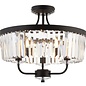 The matt black painted metalwork frame of this ceiling light is the ideal backdrop from the decorative clear cut faceted glass. The effect is a striking light pattern when illuminated. This ceiling light is semi flush and dimmable too.
