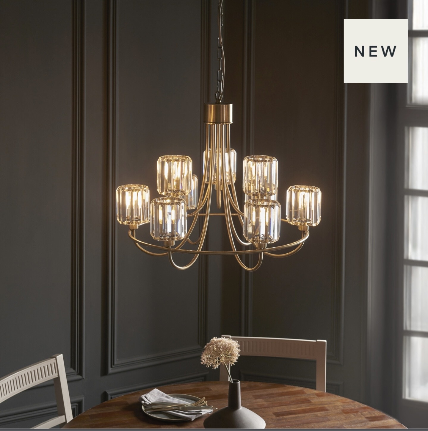 This beautiful chandelier is perfect for bringing polished glamour and luxury to living and dining spaces, and will elevate any foyer or vestibule.