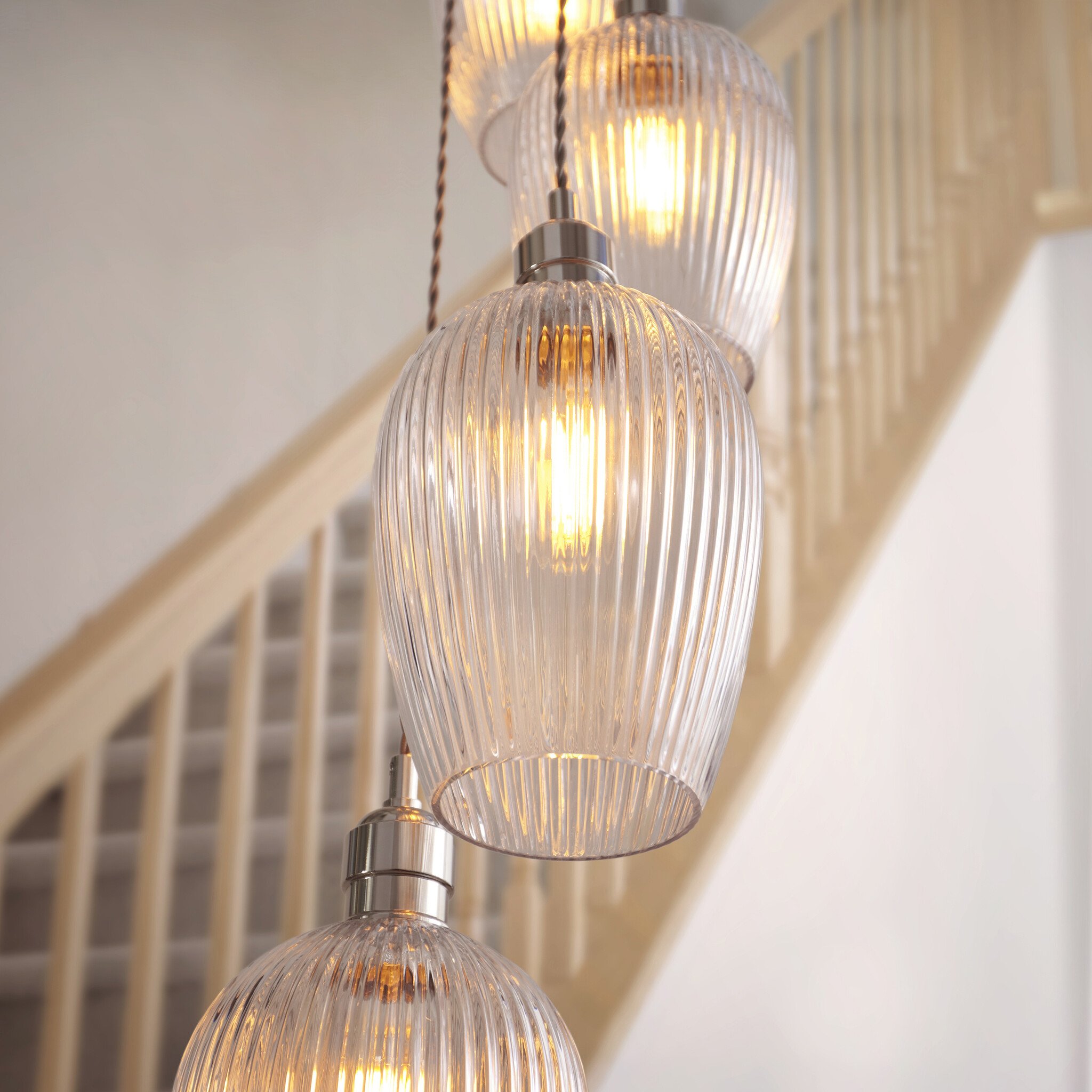 Style alongside the matching Bettina 7 light cascading staircase pendant chandelier, 3 light cluster light or 7 light cluster pendant for co-ordinated glamour.