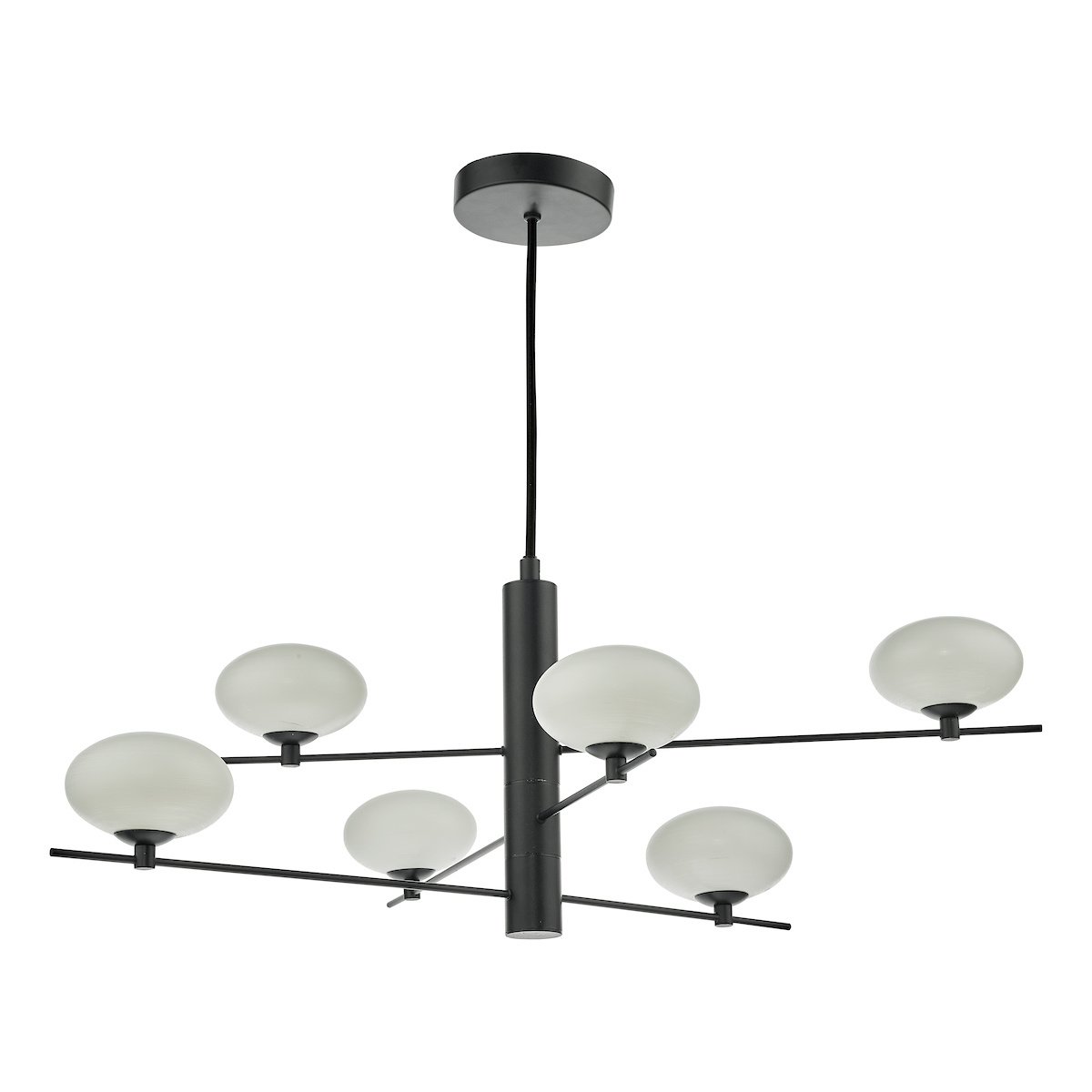 Home / Black Feature Pendant Light – Robin - Mid Century Modern Opal Glass - 6 Light