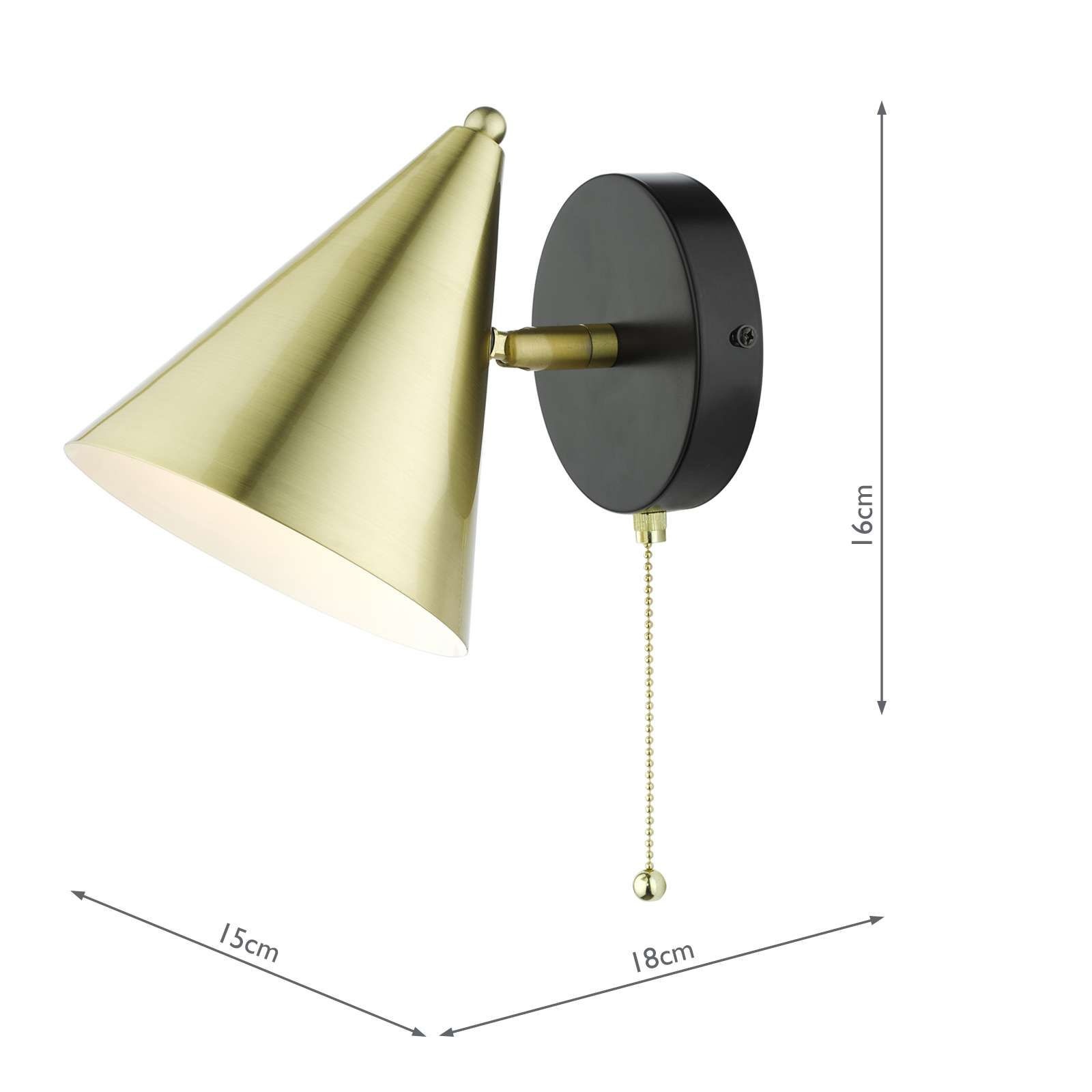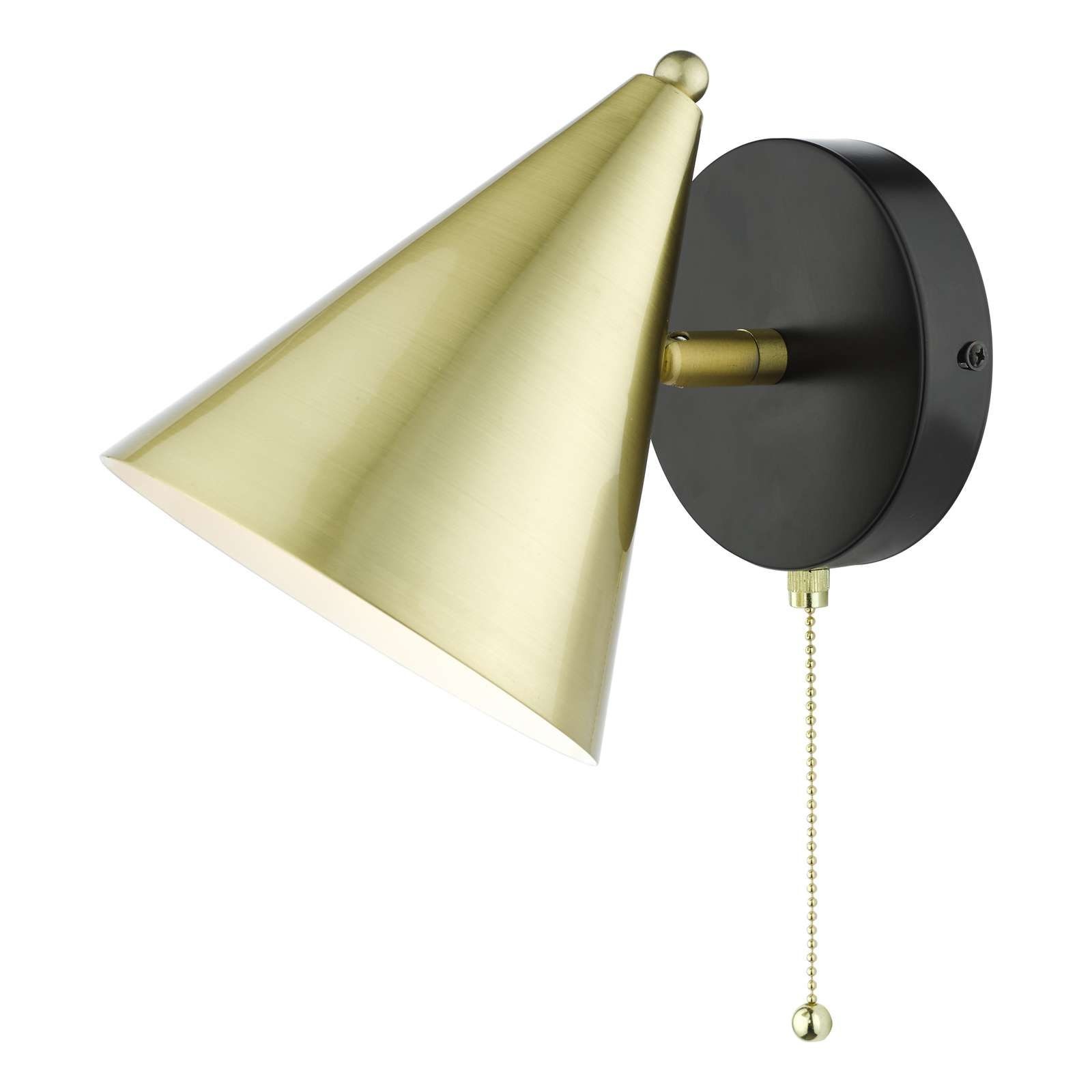The Branco wall light finished in satin gold and matt black, is very versatile with an adjustable head and pull cord switch. The simple design follows the latest geometric design trend.