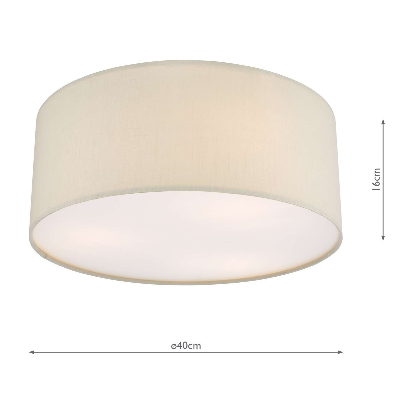 The minimalistic Cierro flush 3-light in Taupe features a round faux silk drum shade with a frosted acrylic diffuser that produces a lovely soft light when lit.