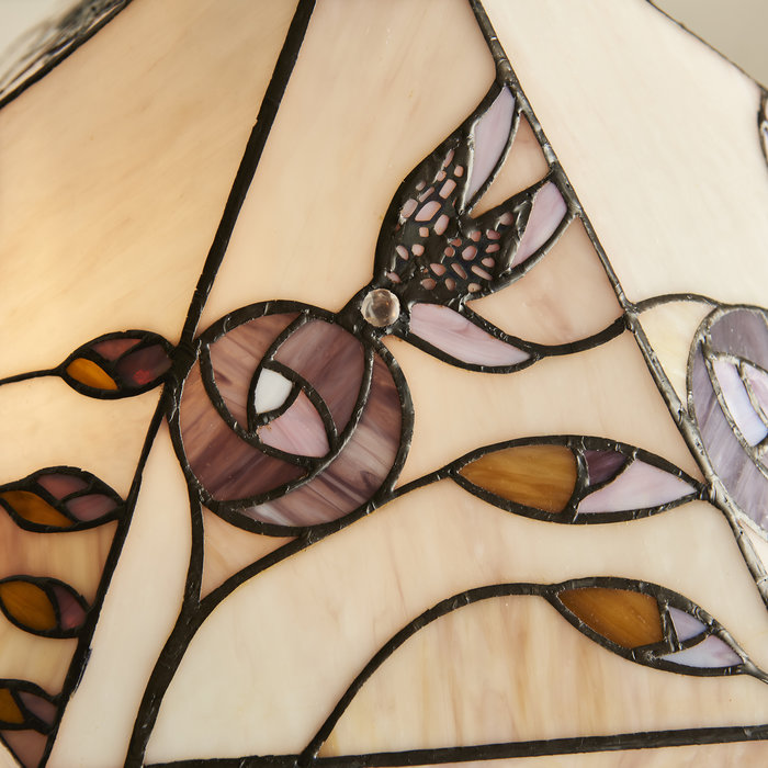 The Damselfly Tiffany lighting collection is a small, perfectly formed range of Tiffany-inspired lights for the home. The style pedigree is clear - the subtle nod to nature with the Mackintosh roses, the understated colours and fine bronze-effect frame and fitting mark this collection as clearly Art Deco inspired.