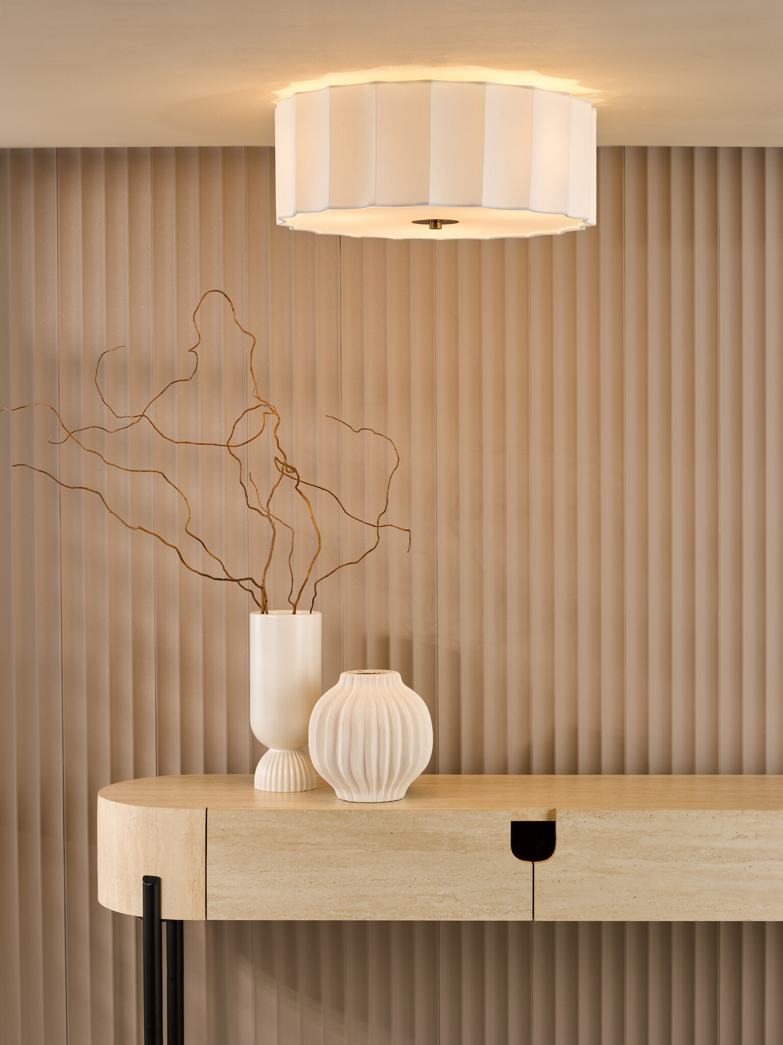 The Drift Scalloped Flush Ceiling Light offers warm, even light with a natural, minimalist design. Perfect for low ceilings in living rooms, bedrooms, or halls.