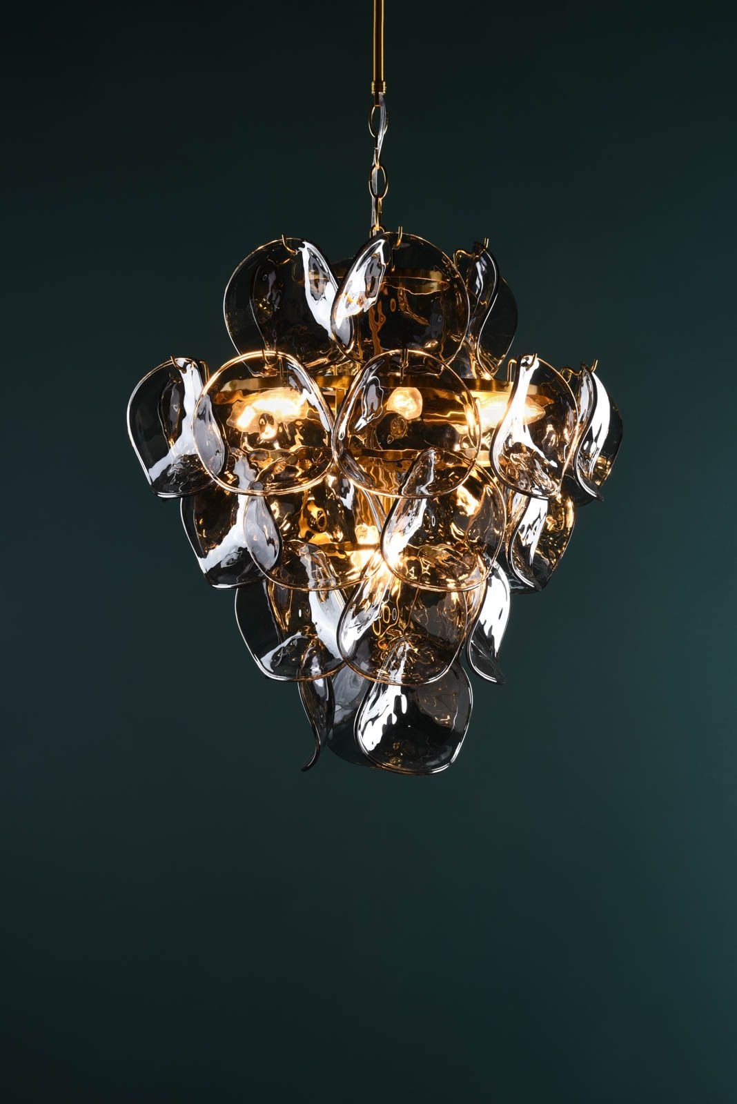 Home / Genoa 8 Light Ceiling Pendant - Natural Brass and Smoked Glass