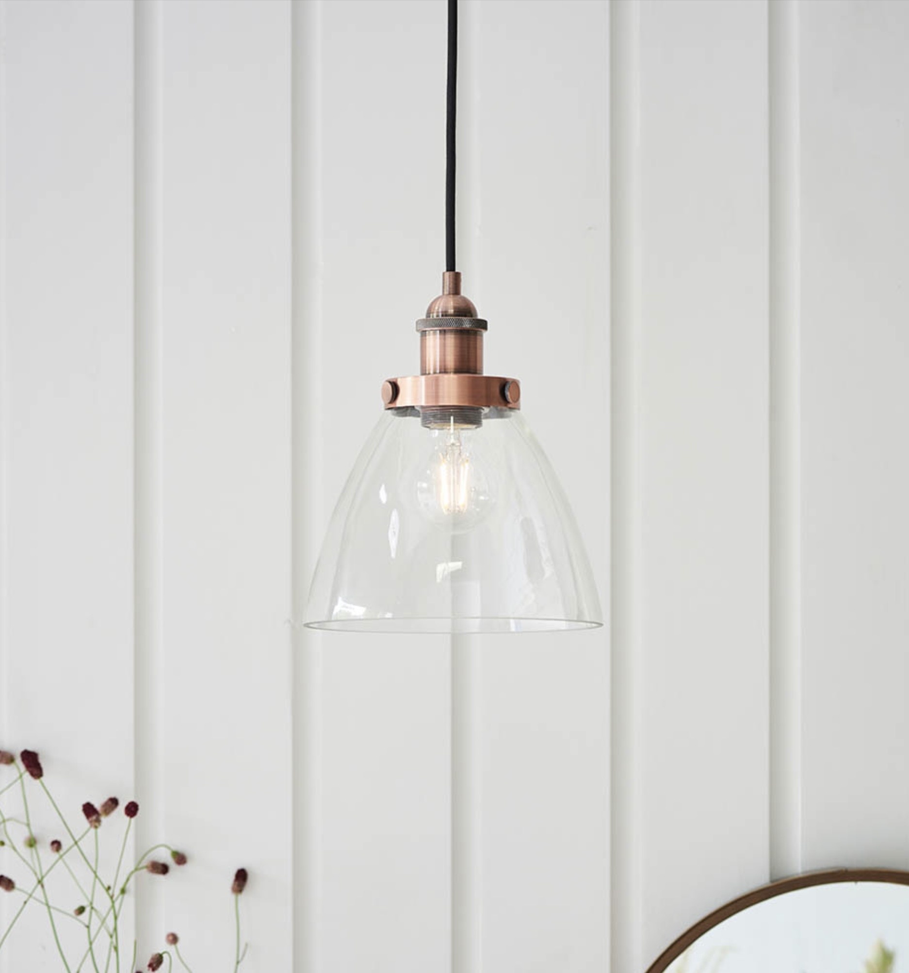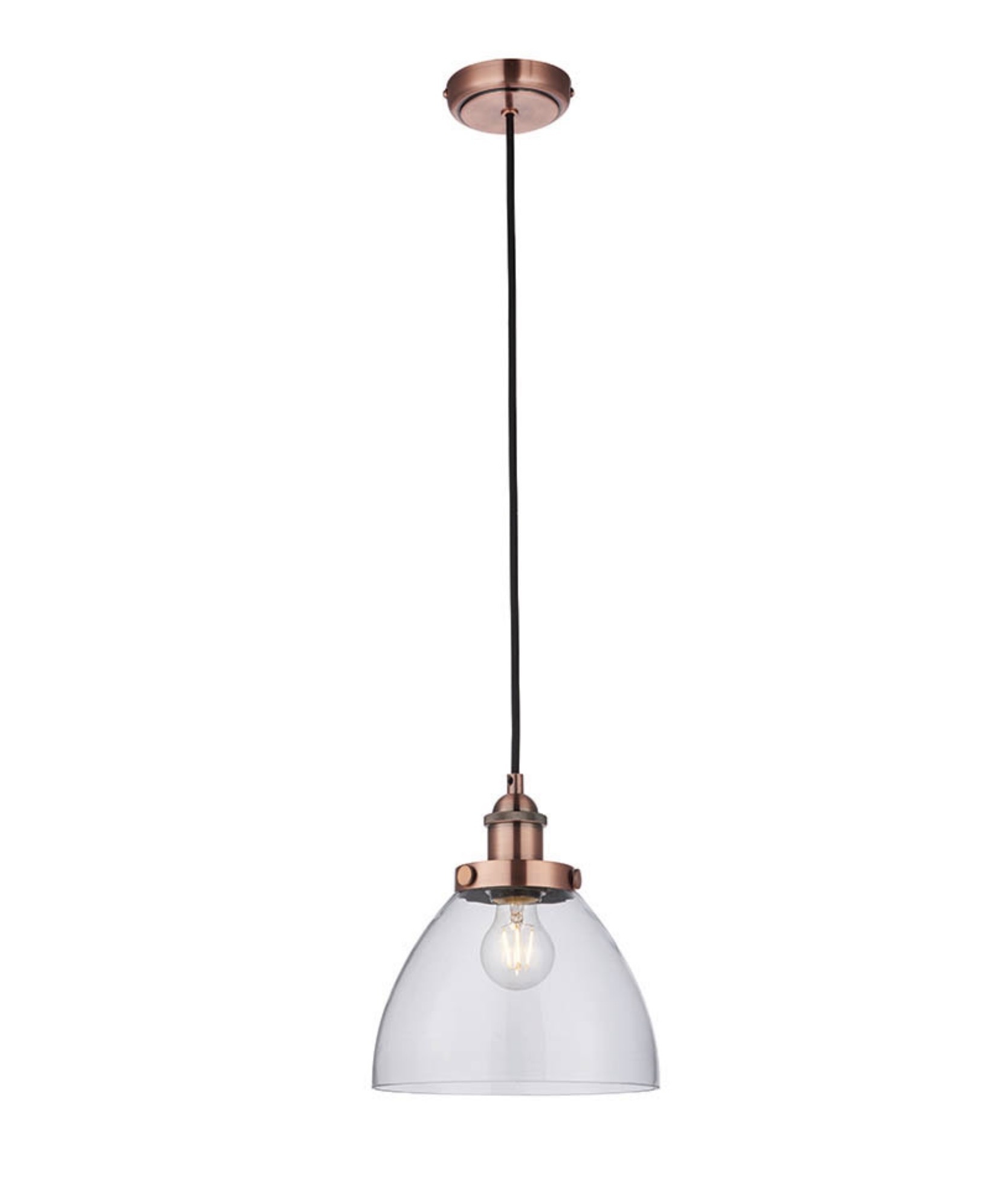 Home / Resto — Industrial Clear Glass Pendant Light — Brushed Copper — 22cm