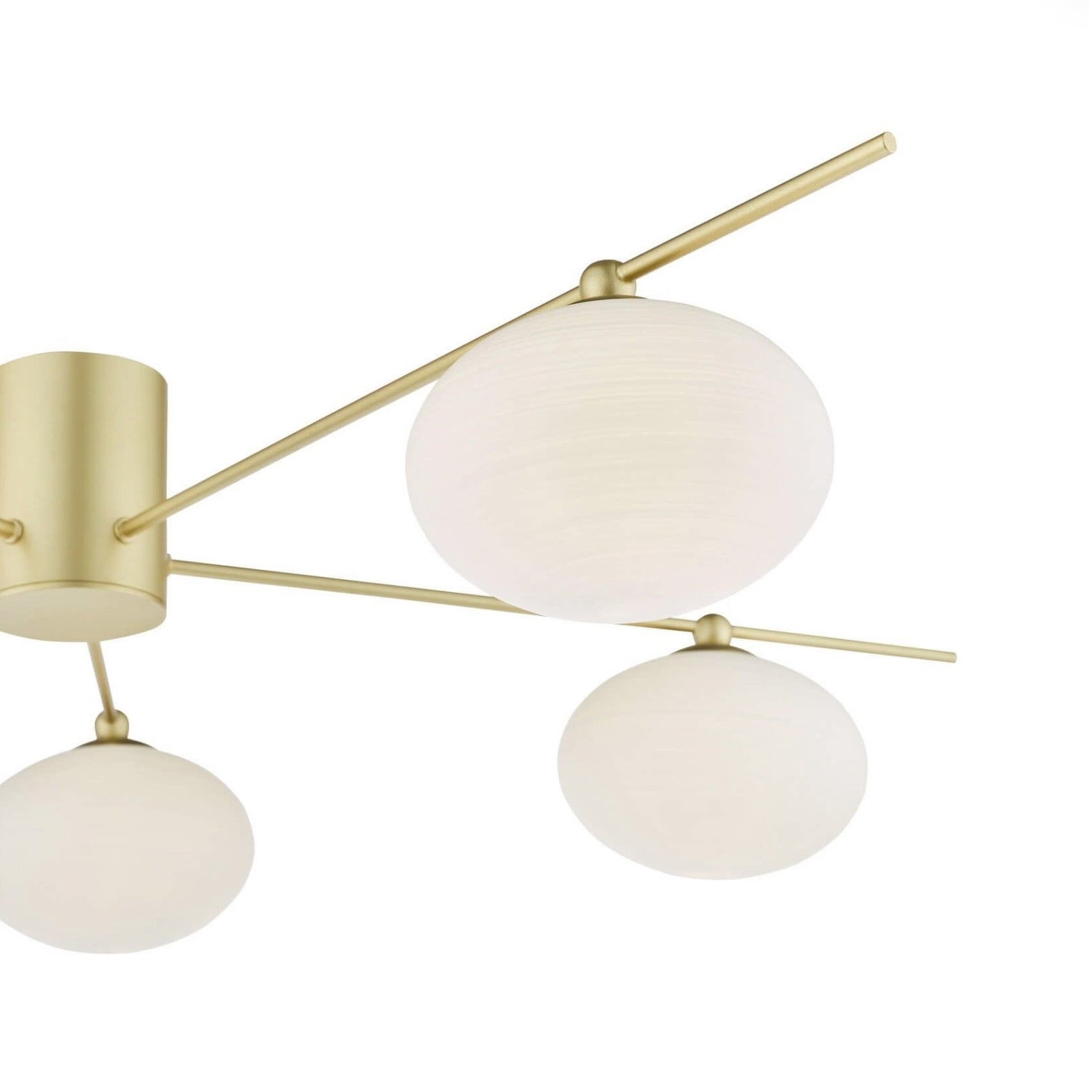 Five spiral-textured opal glass shades perch on fine satin gold arms extending from a narrow minimalist centre body — the same considered design as the Robin black collection, now finished in a tone that feels both contemporary and beautifully cosy.