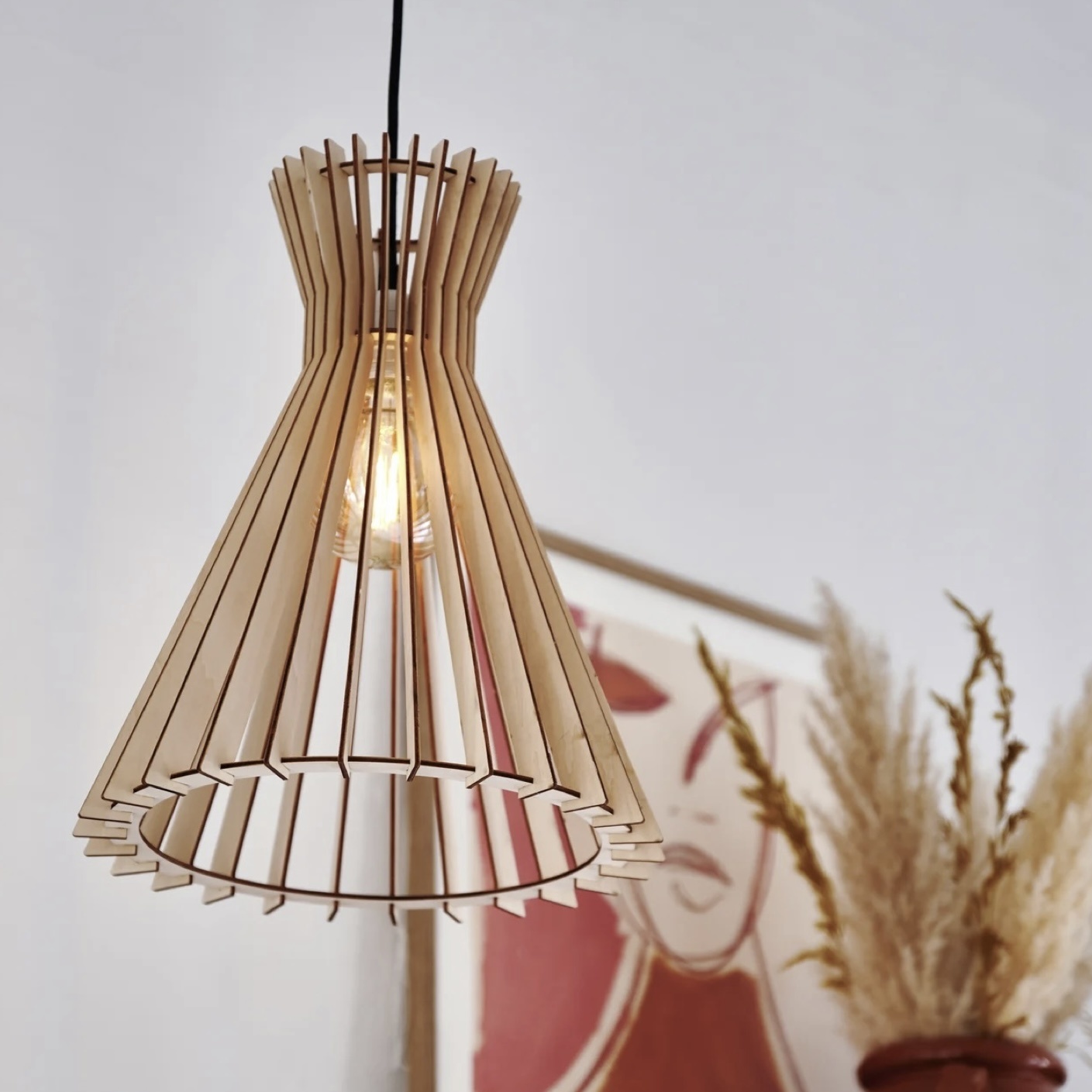 Home / Tags / opal pendant / Gróa - Slatted Wood Scandi Pendant