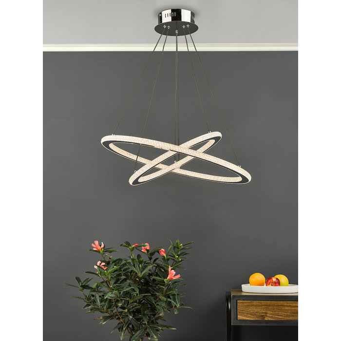The two LED encrusted rings of the Halo pennant light are not only beautiful but they bring an energy efficient lighting solution to your home. The metalwork is a polished chrome finishe, presenting the perfect combination for a modern LED light. Better still, you can arrange the rings in the combination you desire (on installation) and the height can be adjusted when fitting too. A beautiful ceiling light that won’t look out of place in any home - and is sure to draw gasps of wonder too.