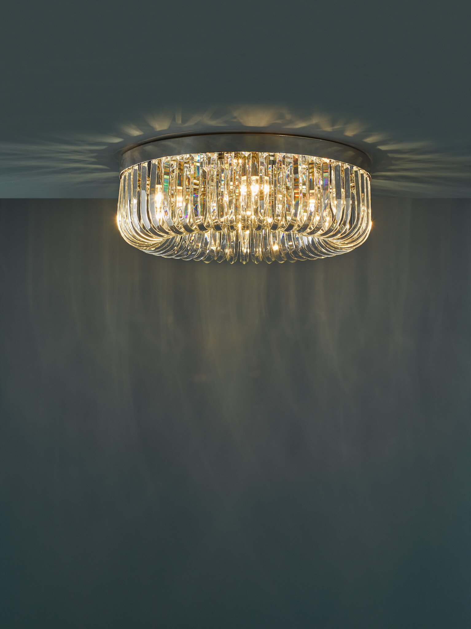At the heart of the range sits the impressive 60cm diameter flush ceiling light — a focal point for spaces with average or lower ceilings, delivering the grandeur of a chandelier without overwhelming the room.