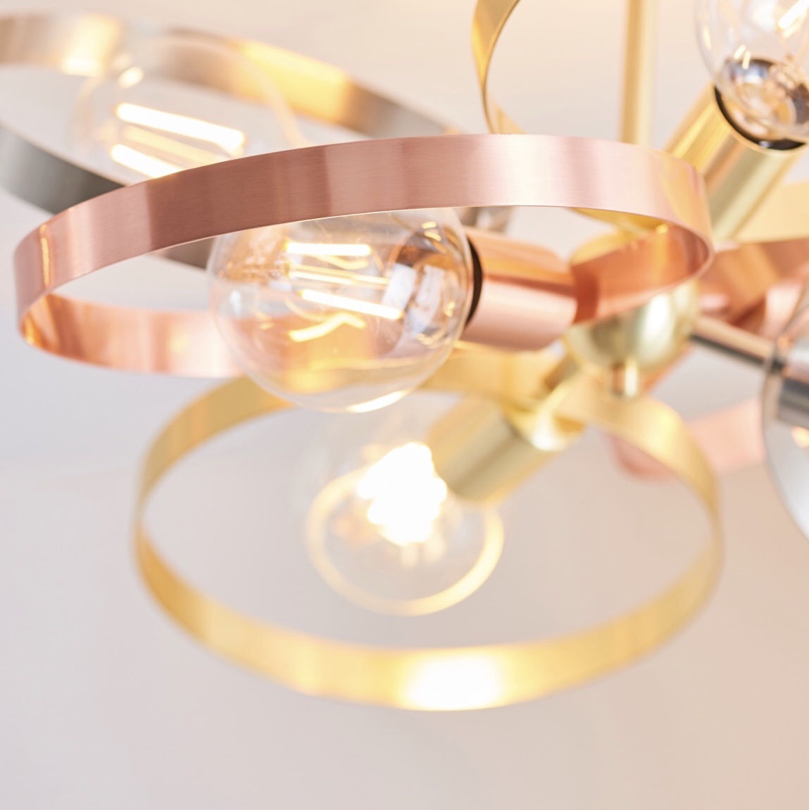 The warm brushed brass, brushed nickel and brushed copper finishes enables this stylish fitting to fit into almost any colour scheme!