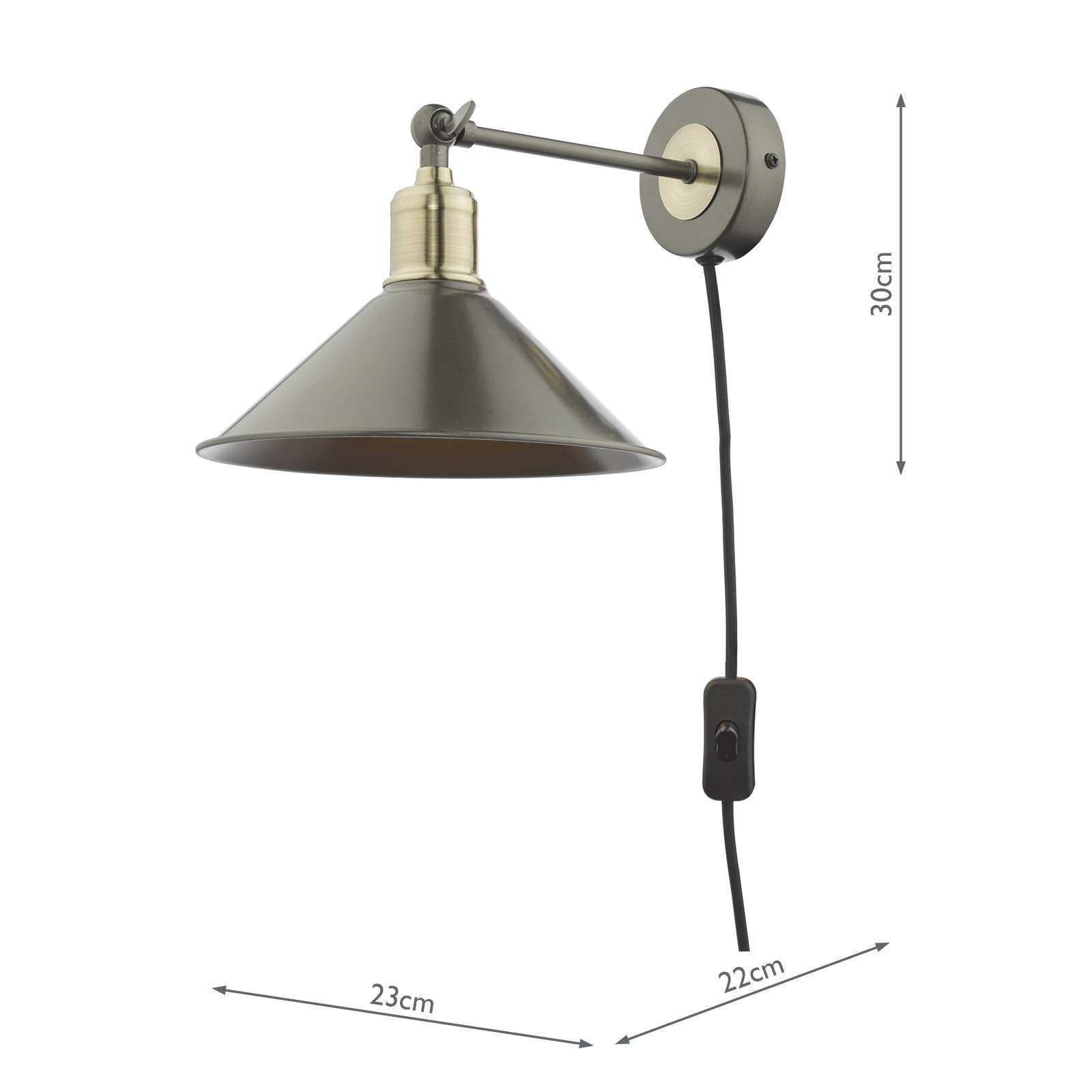 The Jalen plug-in wall light features a graphite coloured metal shade and antique brass details. It is a great looking industrial style wall light.