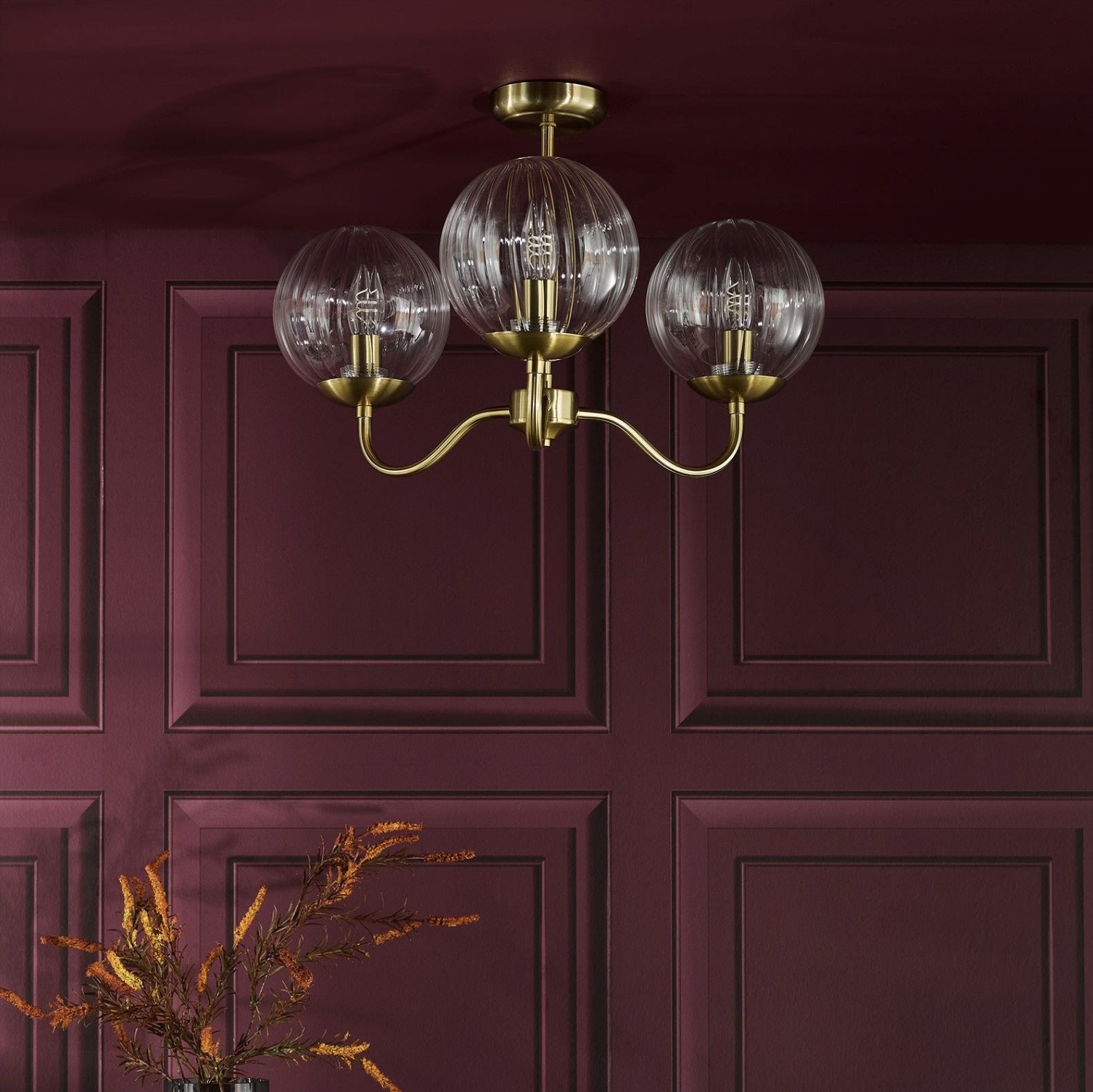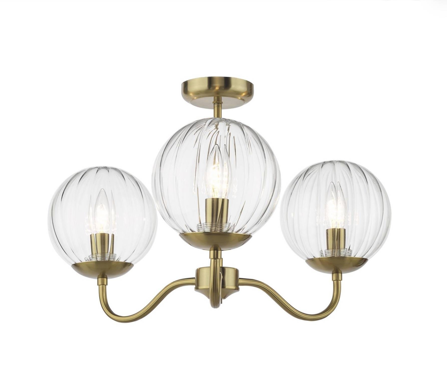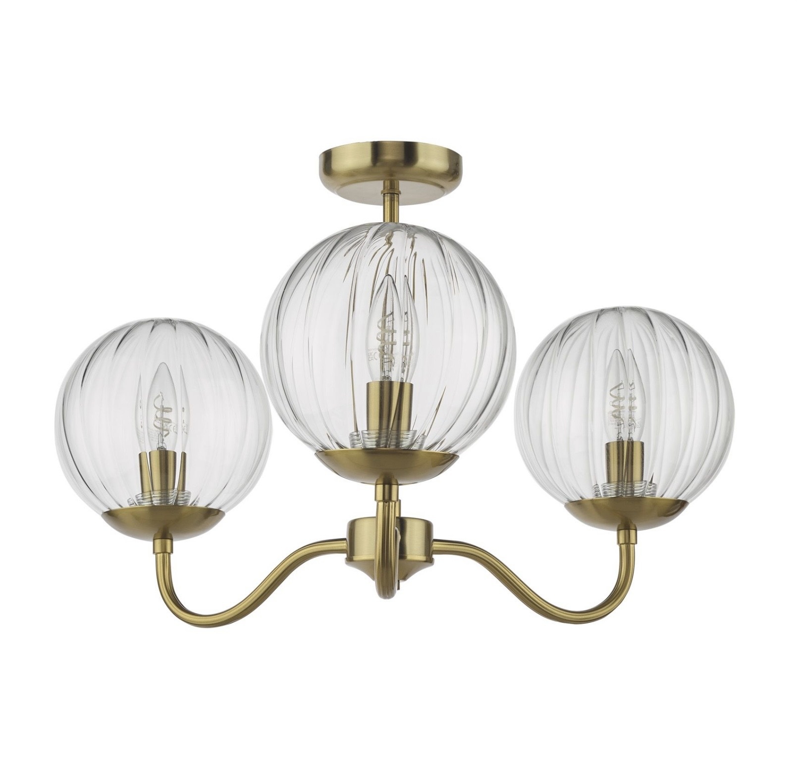 Home / Jocelyn 3 Light Mid Centruy Semi-Flush Ceiling Light – Natural Brass and Glass Globes
