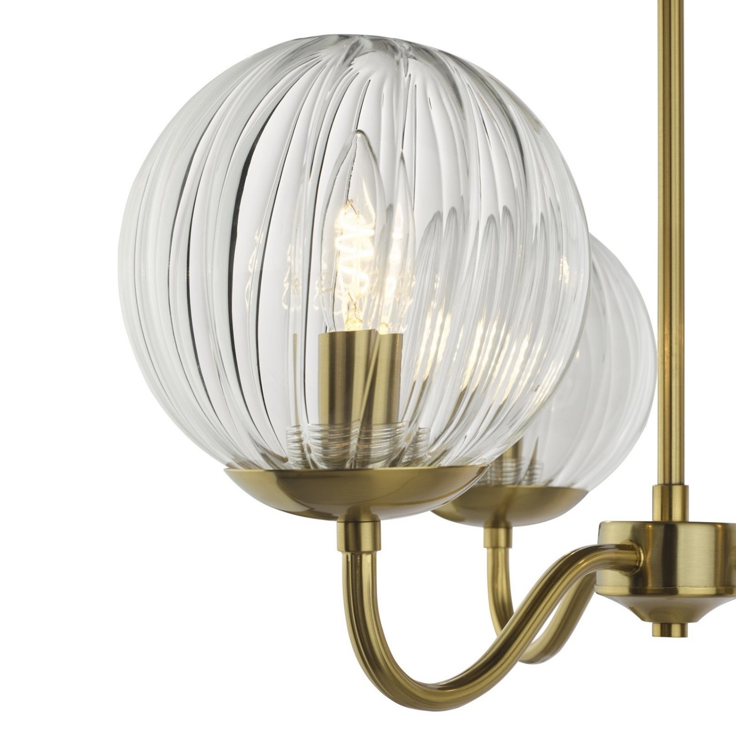 Natural brass, three blown glass globes, one very considered ceiling light.