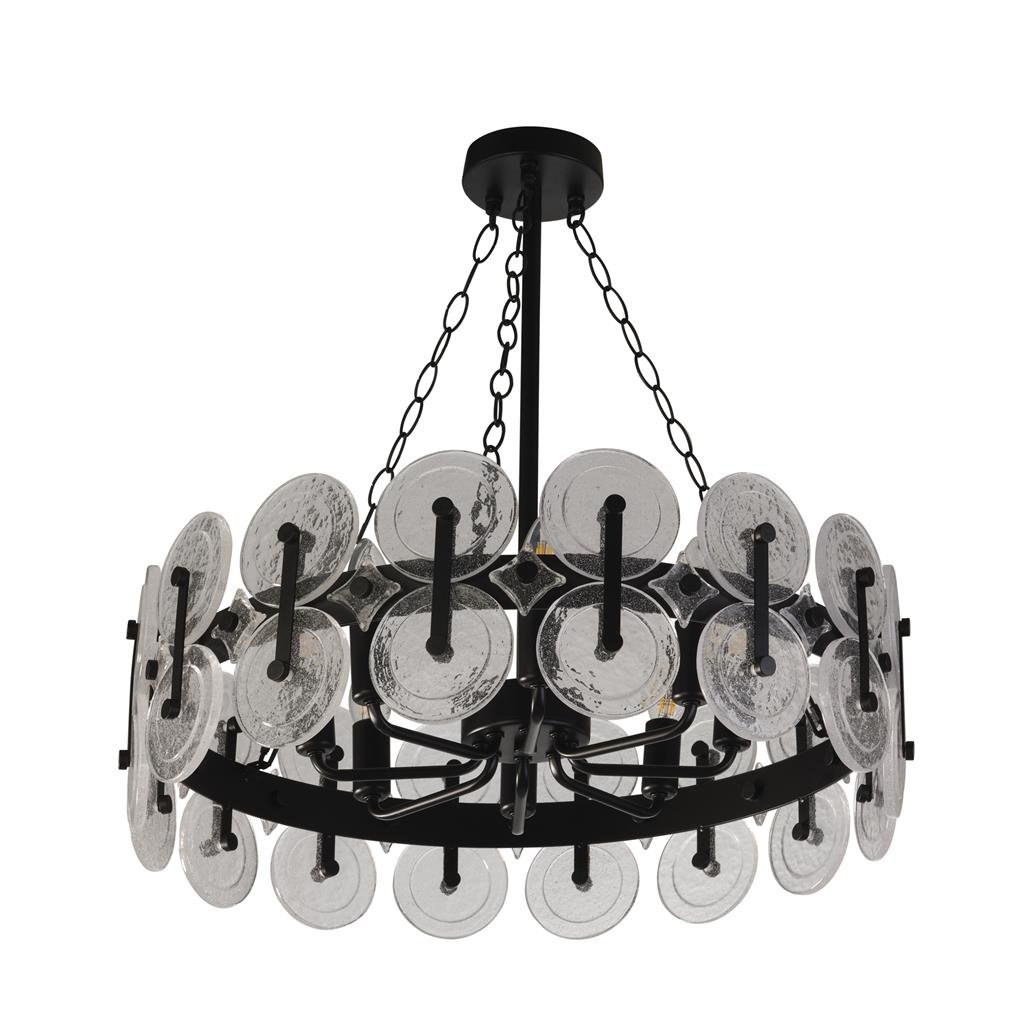Suitable for both traditional and contemporary interiors, this beautiful 8 light pendant showcases black metal and clear bubble glass, merging sophistication with modernity.