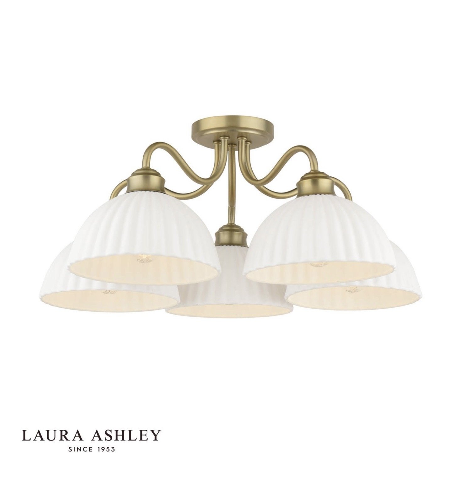 Home / Laura Ashley Durford 5 Light Semi-Flush Ceiling Light – Matt Antique Brass and White Ceramic