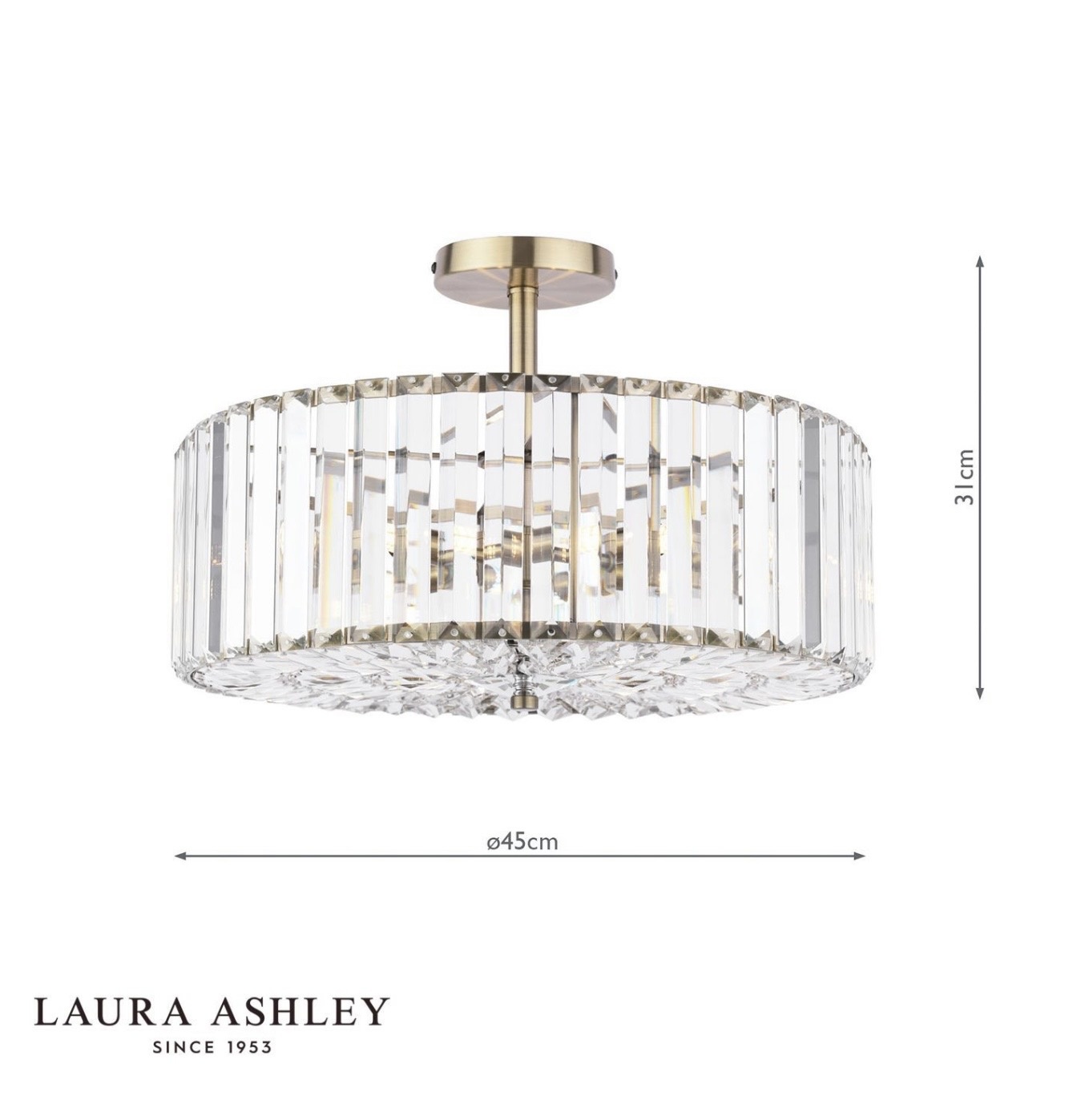 Laura Ashley Fernhurst 4 Light Semi-Flush Crystal and Antique Brass Ceiling Light