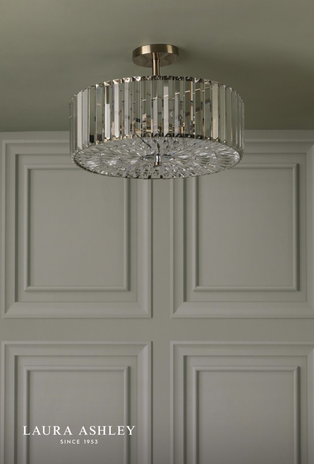 Lightbox is proud to stock the Laura Ashley lighting collection — one of Britain’s most beloved home brands, trusted since 1953 for its commitment to quality, craftsmanship and timeless design. The Fernhurst collection sits at the heart of the Laura Ashley ceiling lights range, offering Art Deco-inspired crystal fittings in antique brass across multiple sizes and formats — flush, semi-flush, and wall light — so you can coordinate throughout your home with ease.