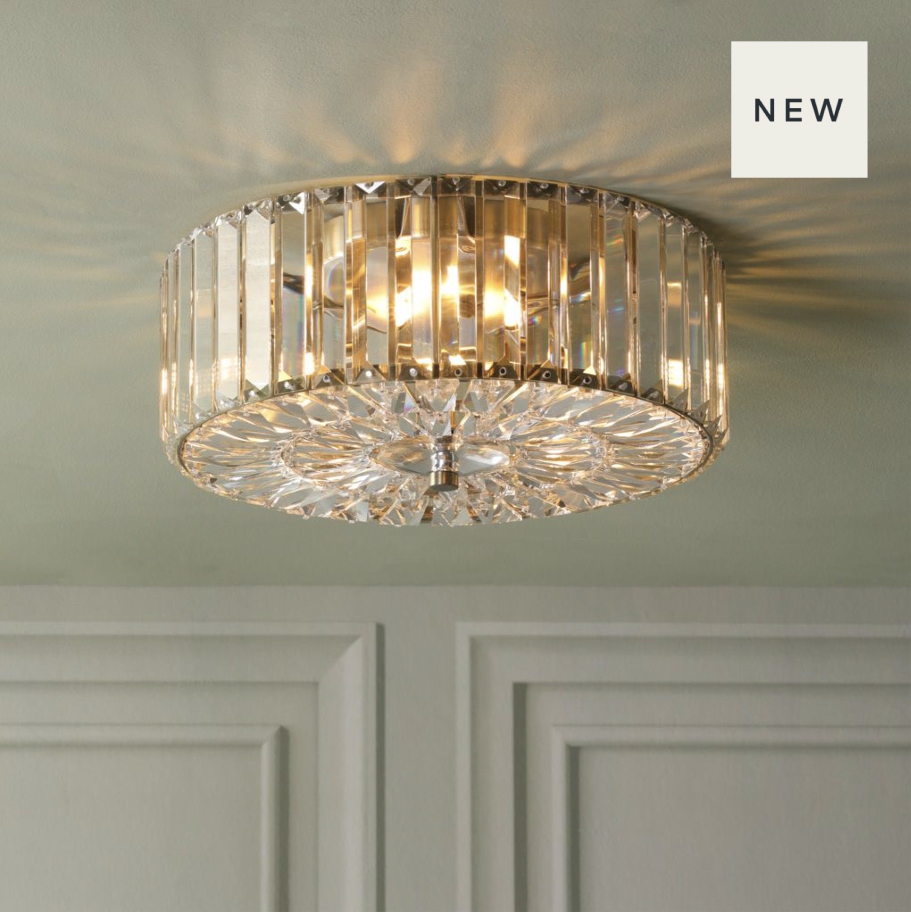 Crystal glamour, flush to the ceiling — no compromise on style.
