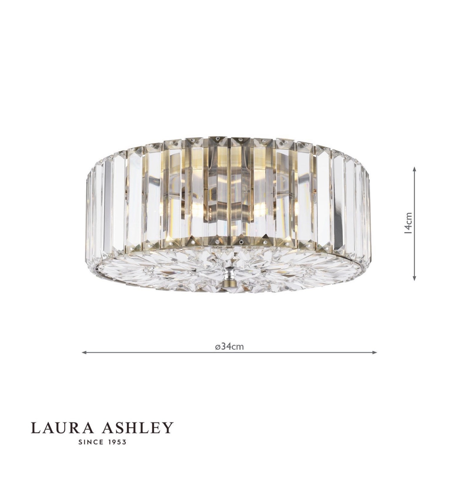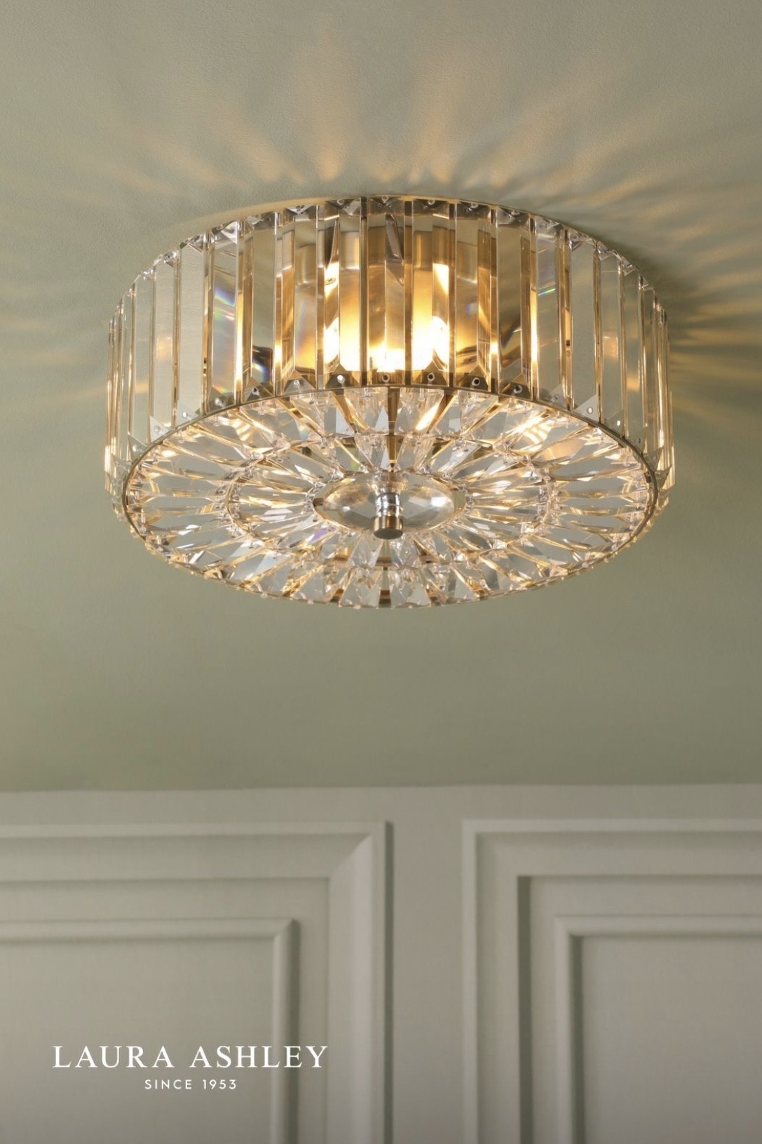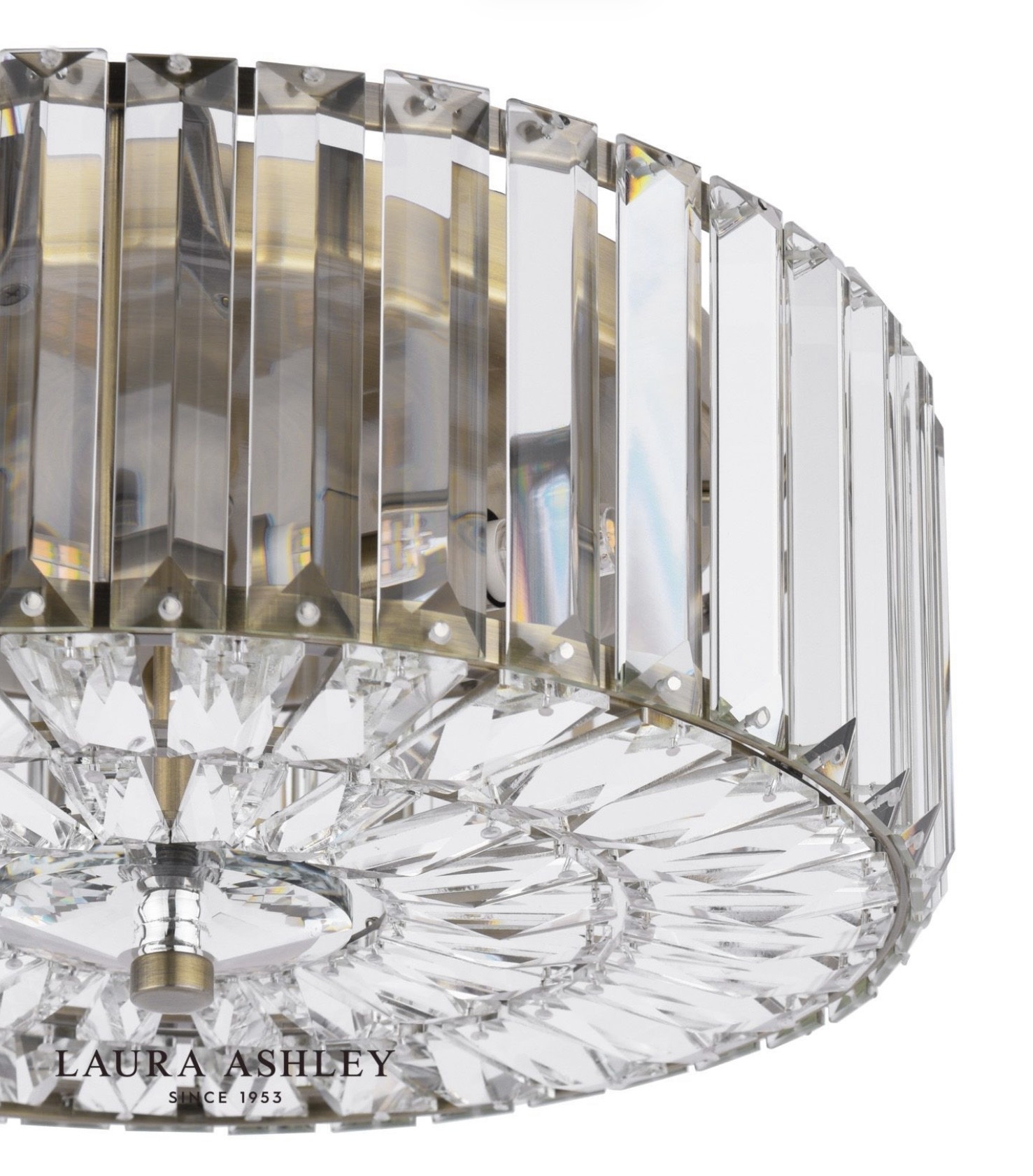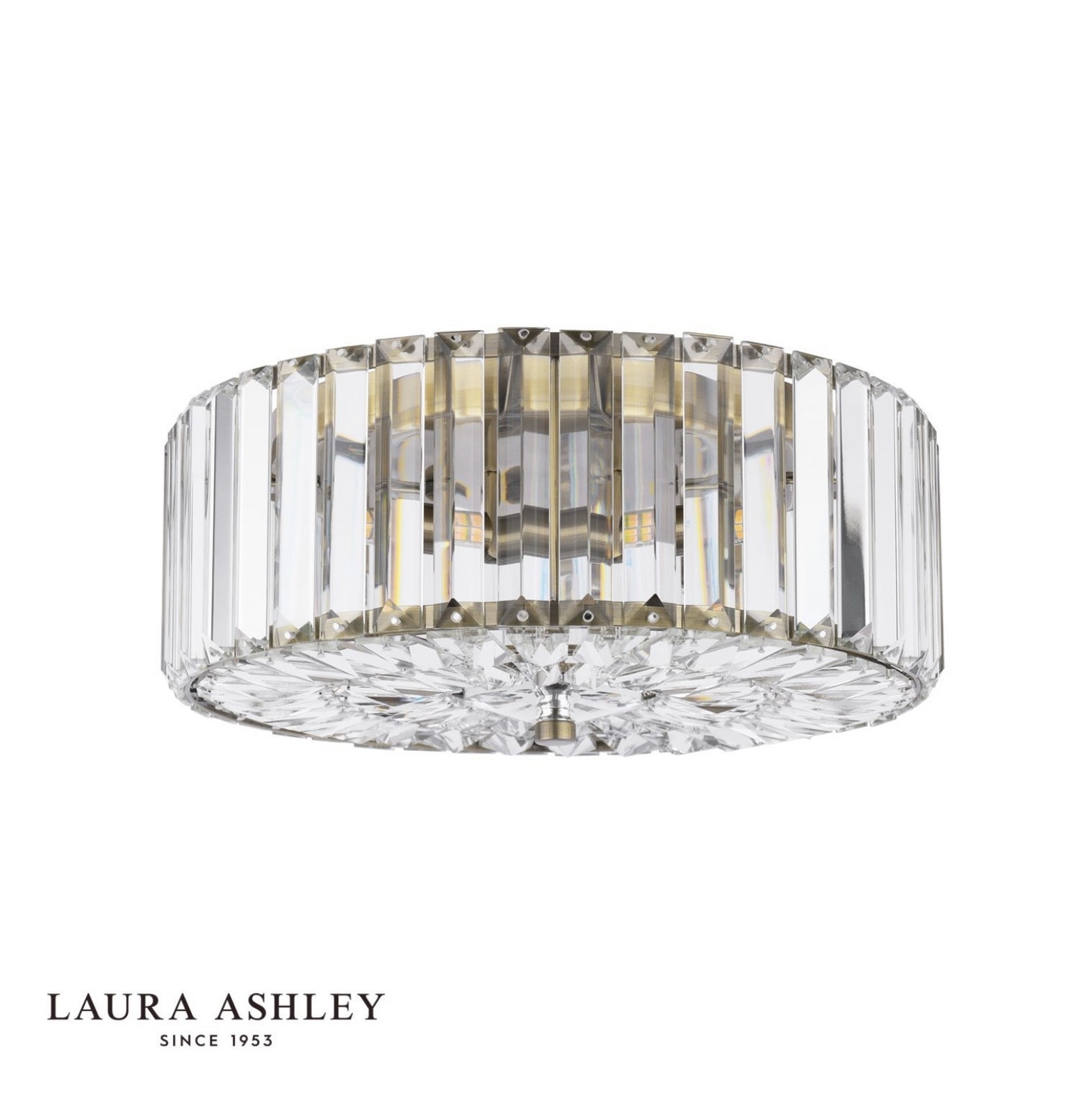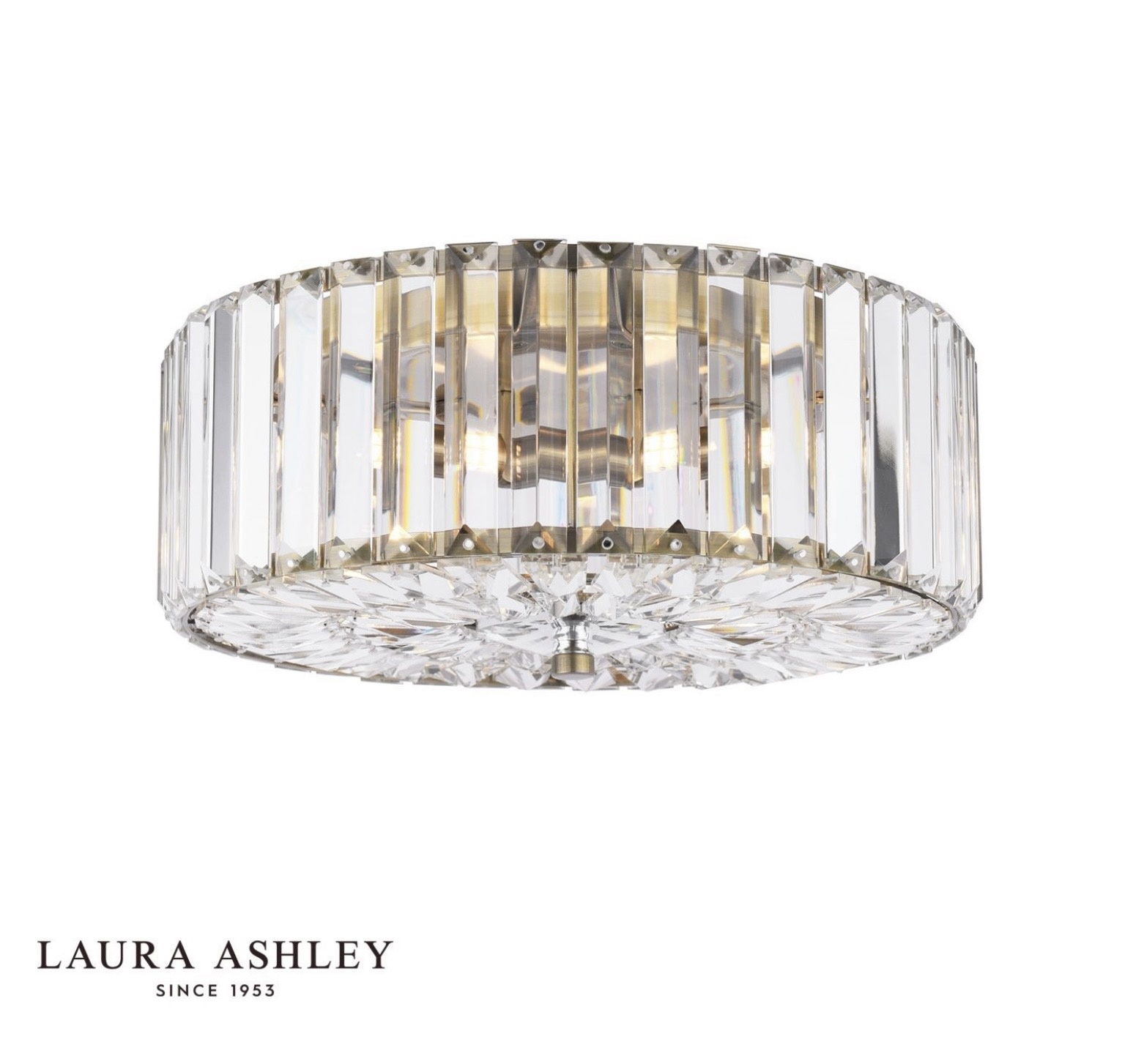 Lightbox is proud to stock the Laura Ashley lighting collection — one of Britain’s most beloved home brands, trusted since 1953 for its commitment to quality, craftsmanship and timeless design. The Fernhurst collection sits at the heart of the Laura Ashley ceiling lights range, offering Art Deco-inspired crystal fittings in antique brass across multiple sizes and formats — flush, semi-flush, and wall light — so you can coordinate throughout your home with ease.
