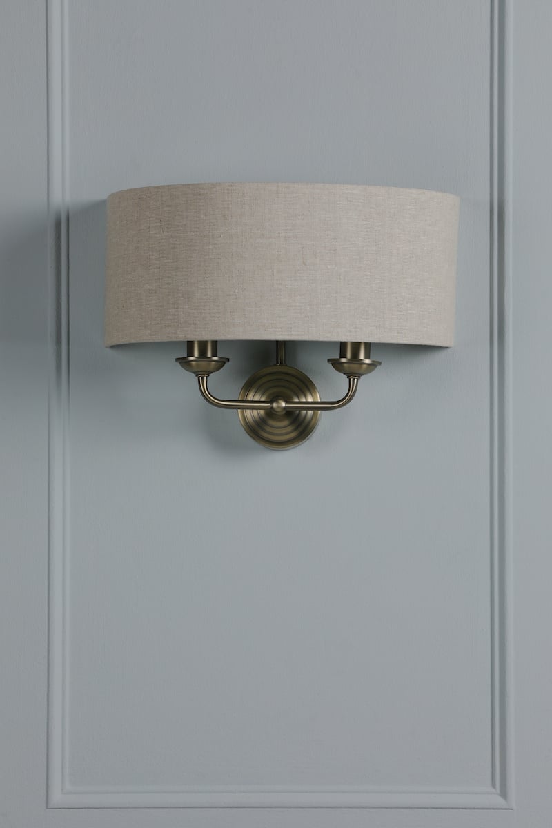 Home / Laura Ashley Sorrento 2 Light Wall Light with Natural Shade - Matt Antique Brass