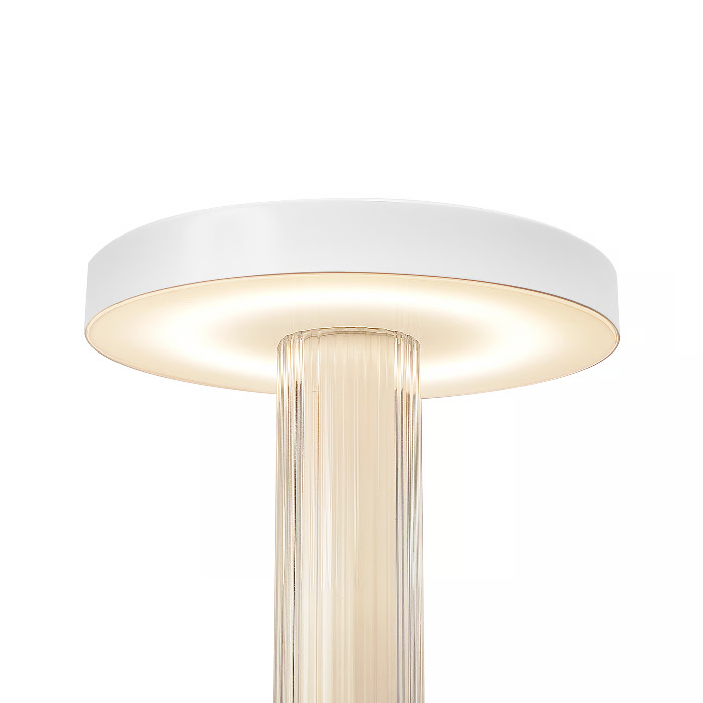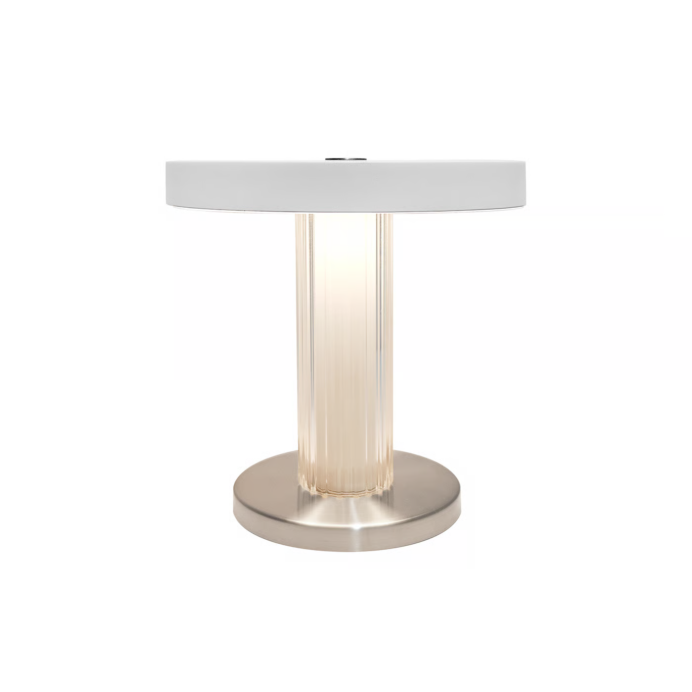 Featuring a beautifully fluted glass stem and a weighted metal base, this cordless table lamp draws subtle inspiration from Art Deco design, reinterpreted through a clean, contemporary Scandinavian lens.