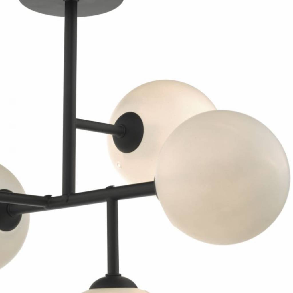 Home / Tags / Quinn Post / Mac - 5 Light Matt Black & Opal Glass Globe Statement Semi Flush Fitting