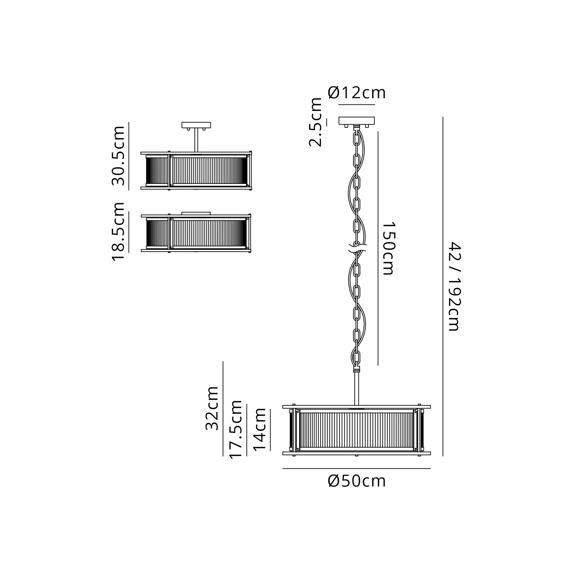 - Flush mount – for lower ceilings, hallways and kitchens (Height: 18.5cm)