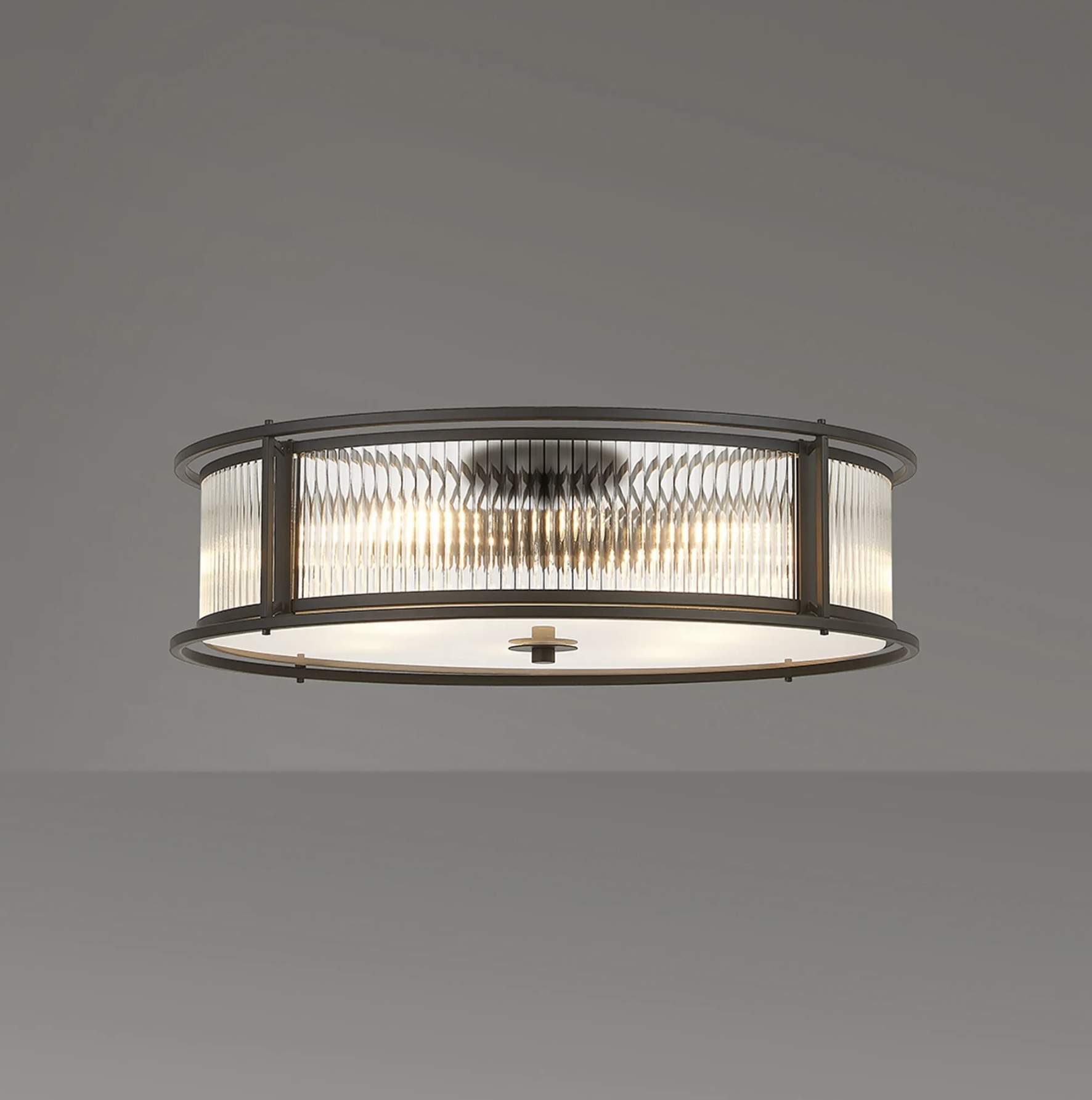 - Ribbed glass panels for soft, diffused light