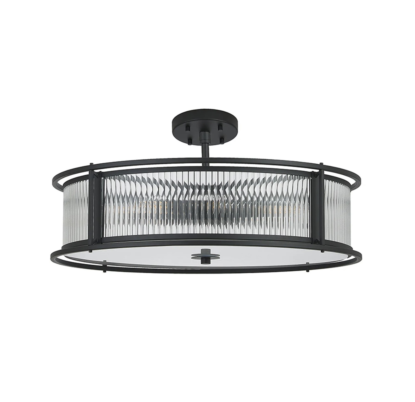 Home / Margot - Large Semi Flush Ceiling Light– Black Ribbed Glass (Convertible Design)