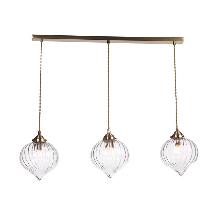 Home / Mia - Teardrop Twisting Glass 3 Light Antique Brass Bar Pendant