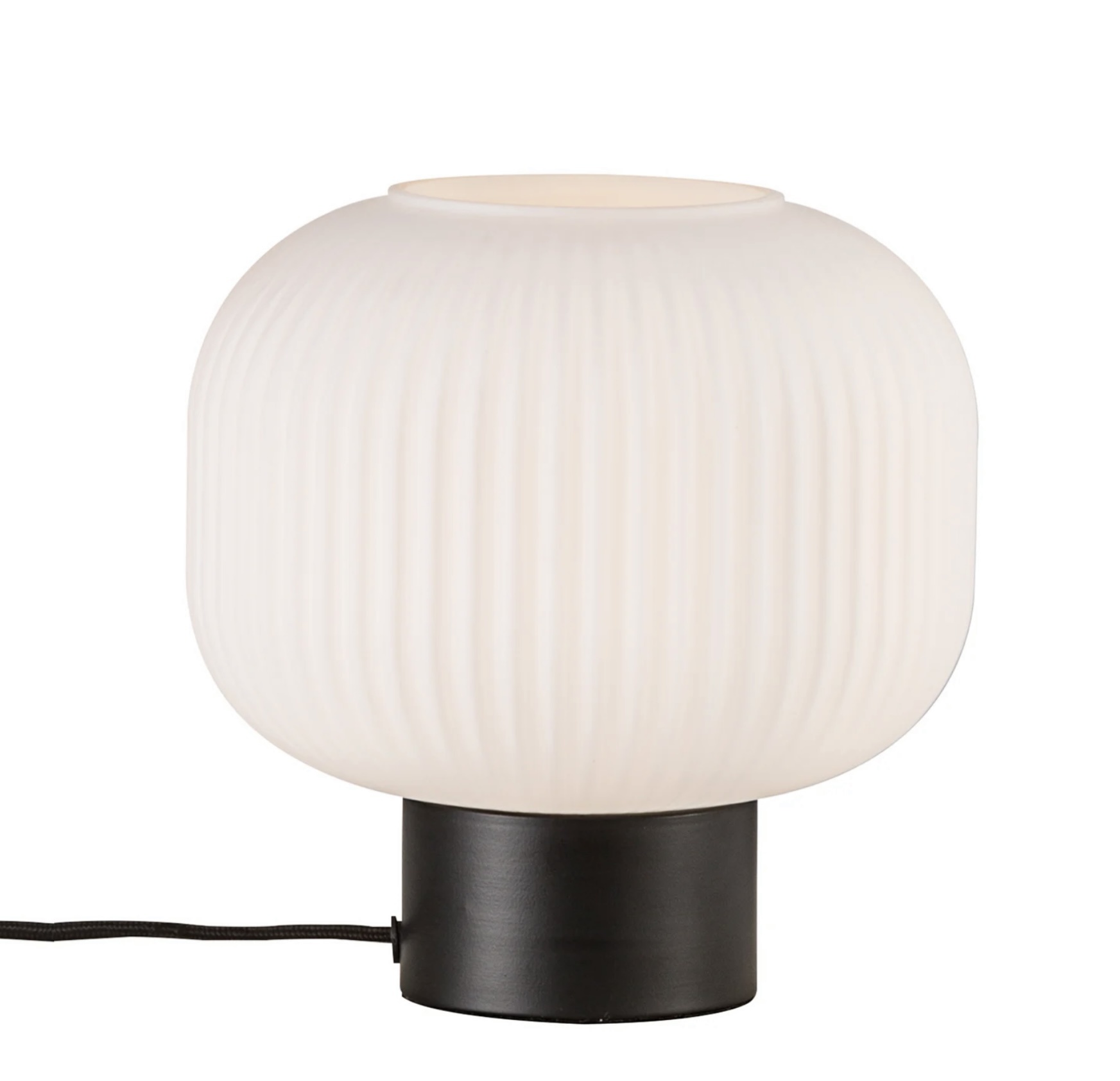The opal white glass shade of this delightful Scandi table lamp lends itself well to this style of design. The black metal base of this table lamp gives it a modern edge. The monochrome colourway is not one that will ever go out of fashion either..