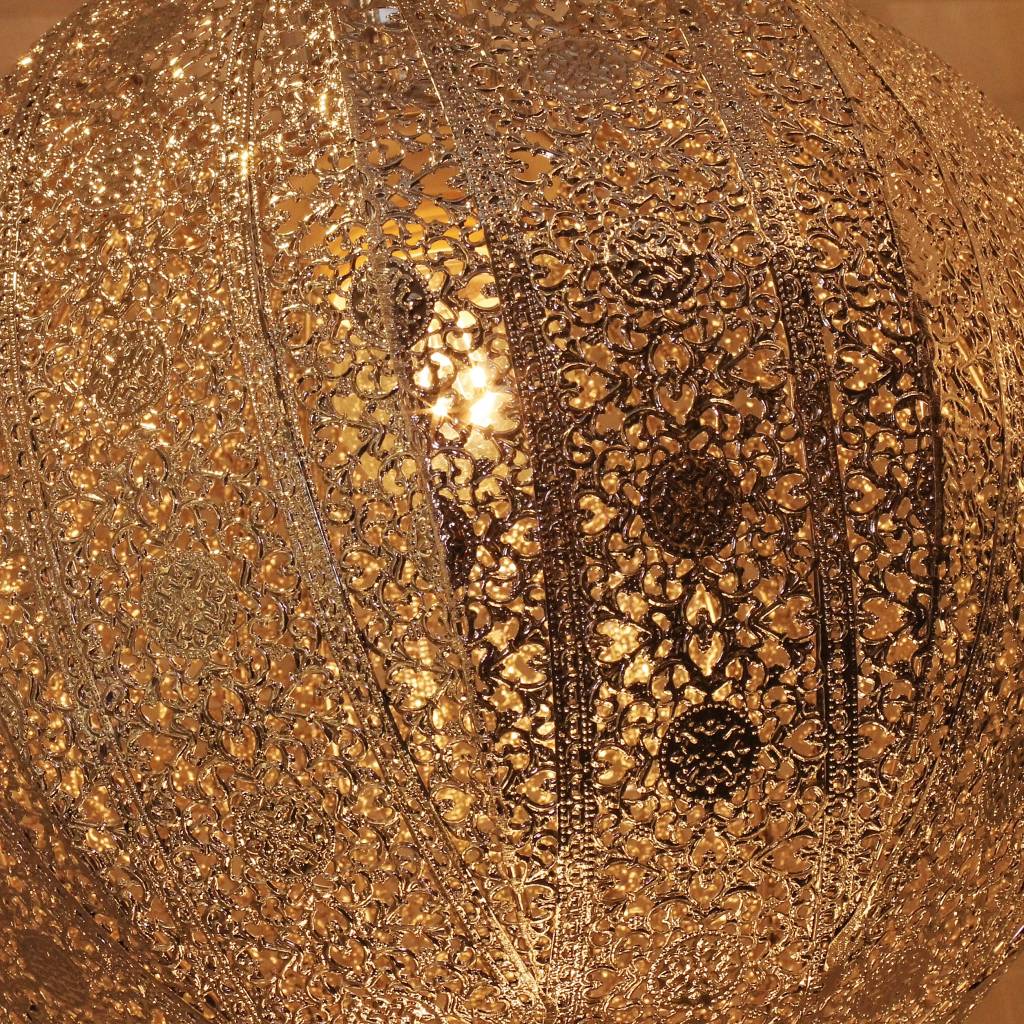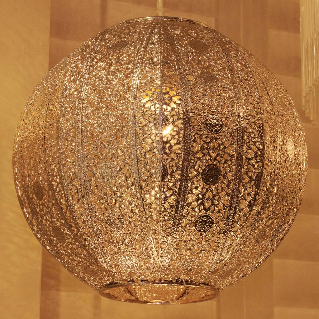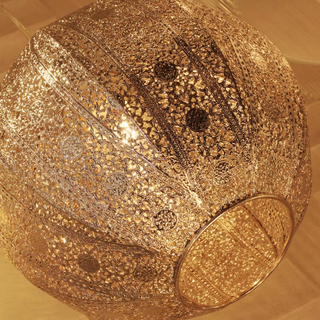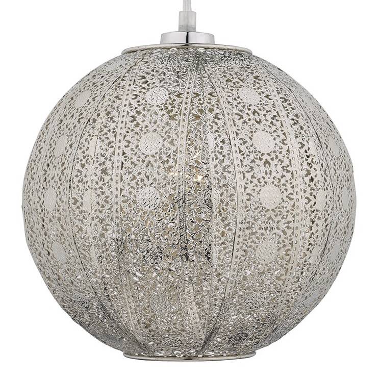 This delicate antique silver, filigree globe pendant is an easy way to add glamour to any interior. It comes to life when illuminated, throwing patterns of light all around the room.