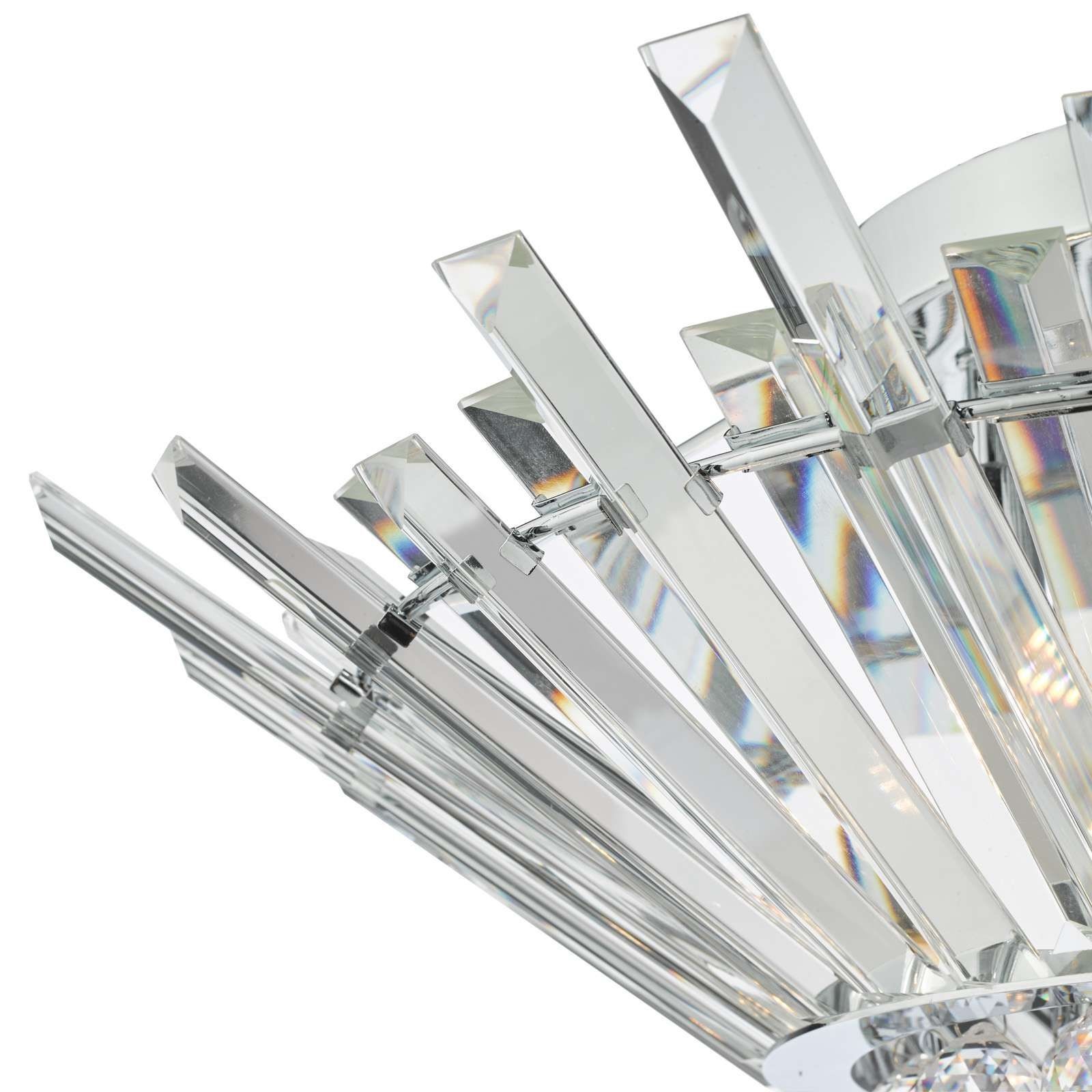 The Nimbus crystalflush crystal ceiling light was inspired by art deco ballerina rings of the 1920s. The staggered coffin crystals form a halo around a centre of faceted crystal droppers. This flush light is more like a grand chandelier for your ceiling, allowing the glamour of a chandelier where ceiling heights don’t allow.