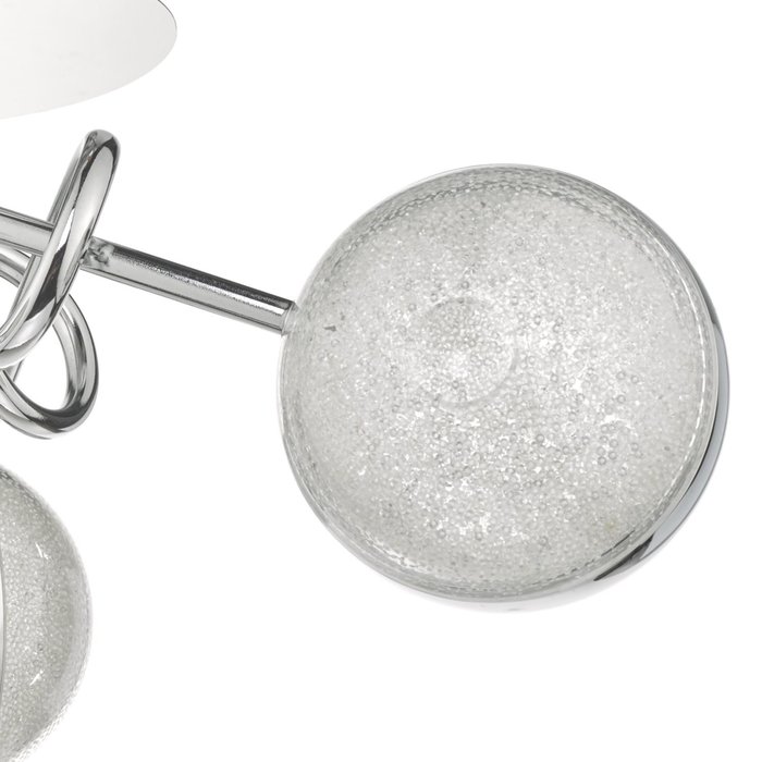 Featuring twisted, polished chrome arms, which suspend decorative acrylic orb shades that are lit within by LEDs - throwing a sparkly light around the room.