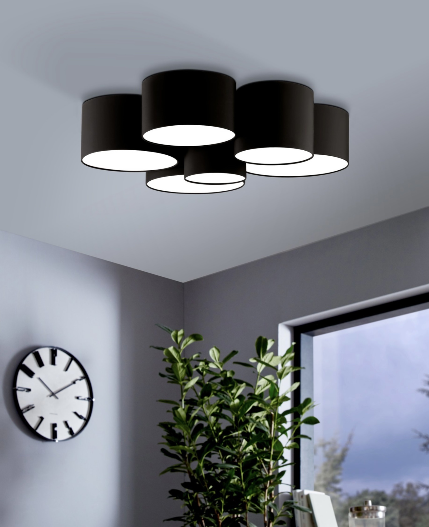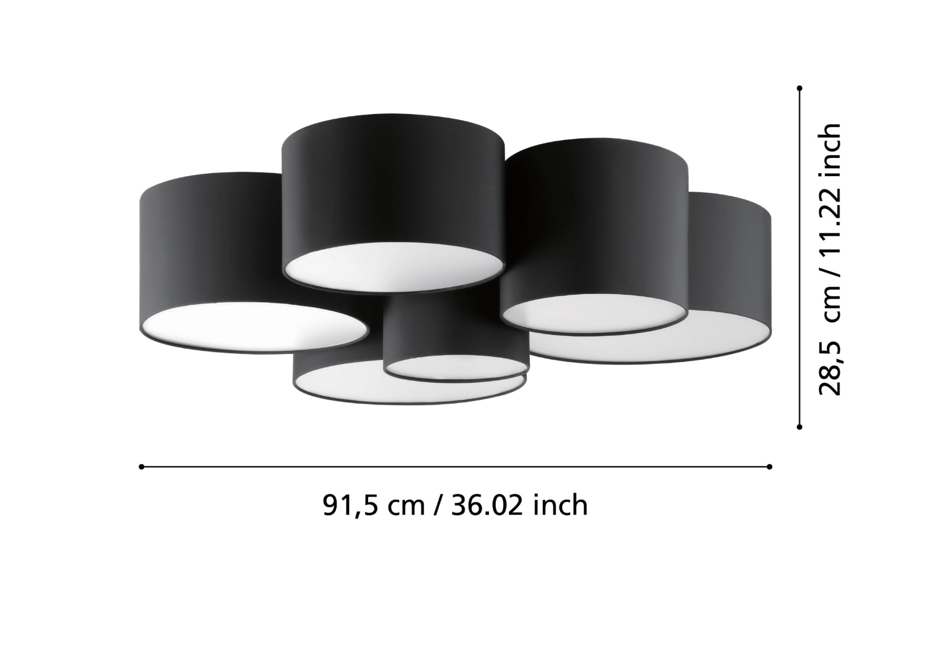 Dropping down just 25cm from the ceiling yet with a diameter of almost a metre, this impressive fitting is a great way to make a statement in large rooms with lower ceiling heights.