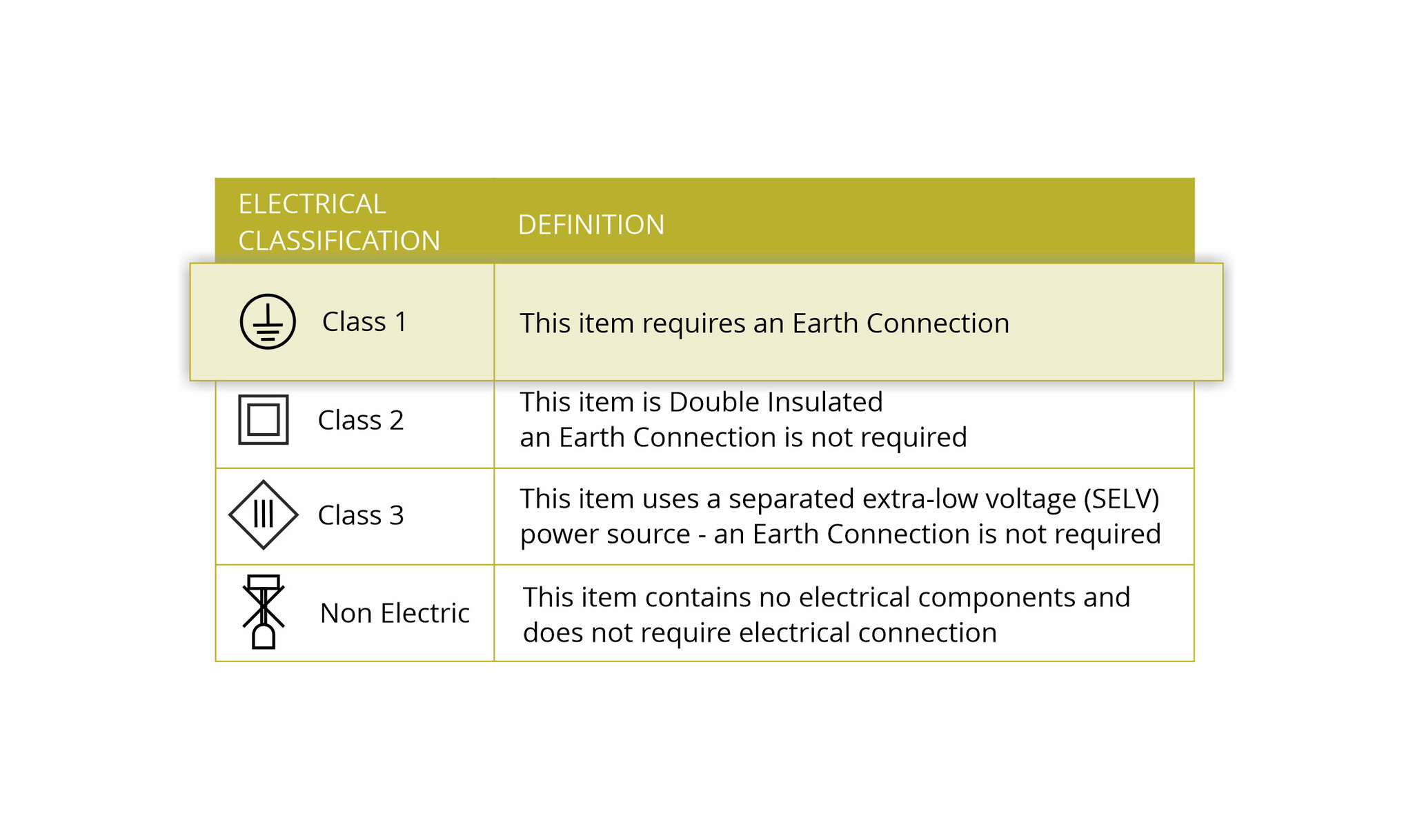 Class 1 - Earth Connection Required