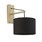 A minimalist range of angular arc fittings finished in Matt brass with a black finished base and supplied with a Black cotton fabric shade with matching lining.