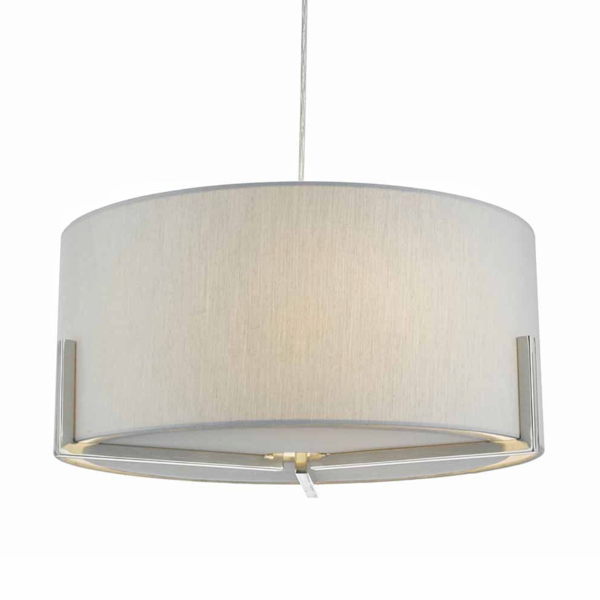 The SANTINO three-light pendant in satin chrome and grey finish is supplied with grey satin shade and matching diffuser.