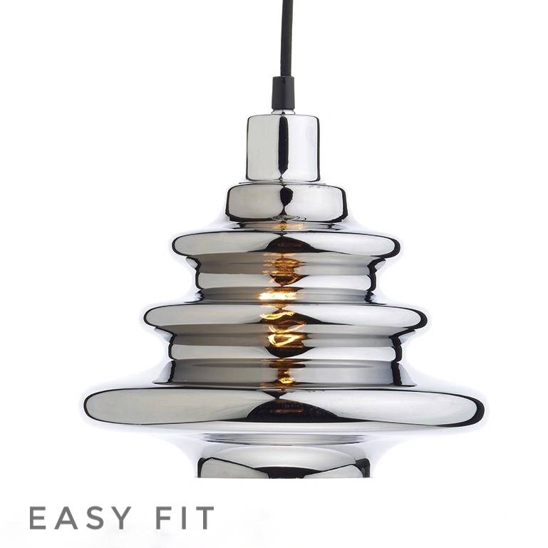Shown with an polished chrome suspension kit & lampholder (sold separately). Easy fit for an E27 lamp holder and supplied with a reducer ring for E14/B22 compatibility.