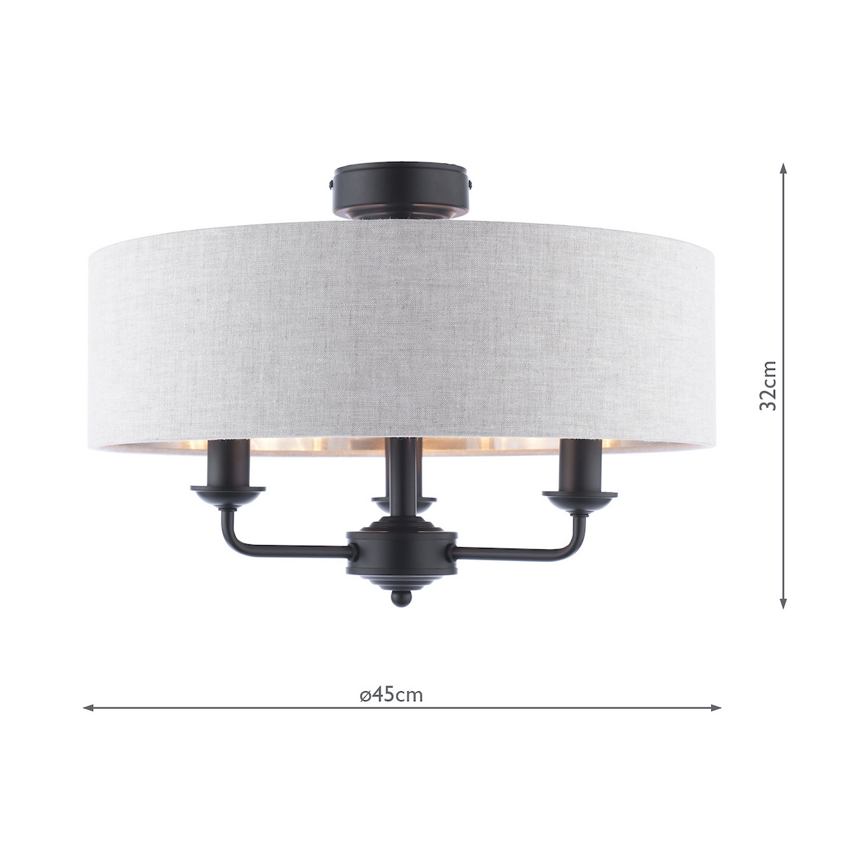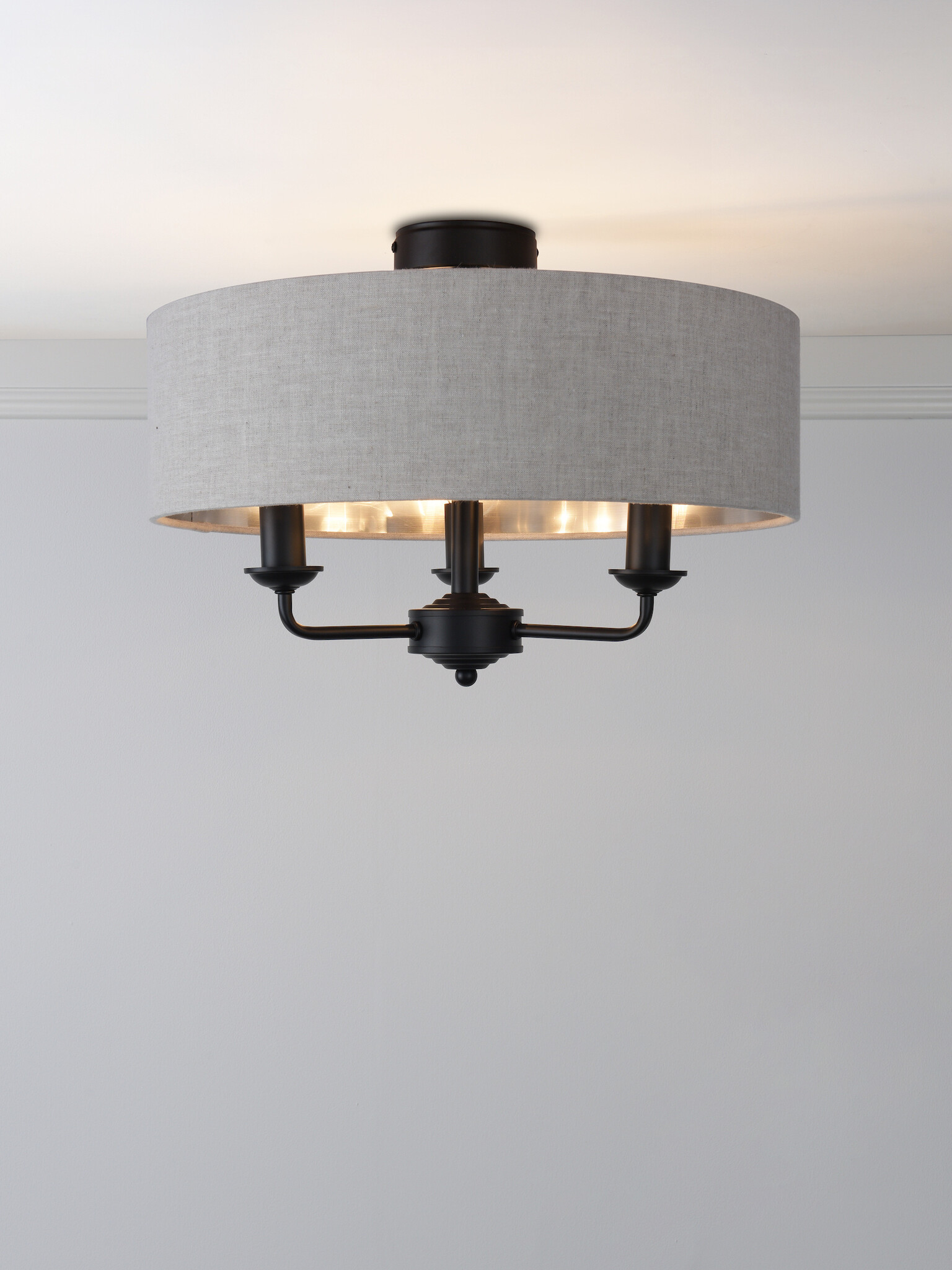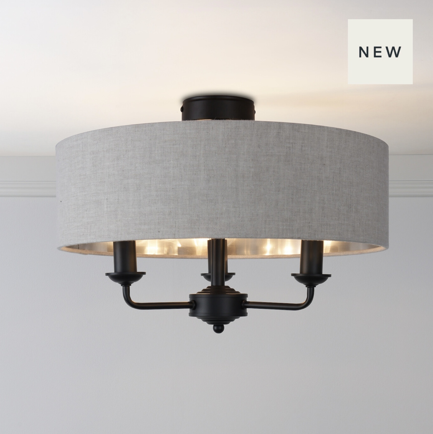 Home / Tags / Astral LED Wall Light / Sorrento - 3 Light Semi-Flush Ceiling Light Matt Black & Natural Shade - Laura Ashley