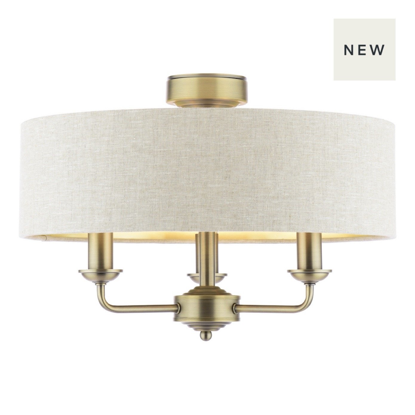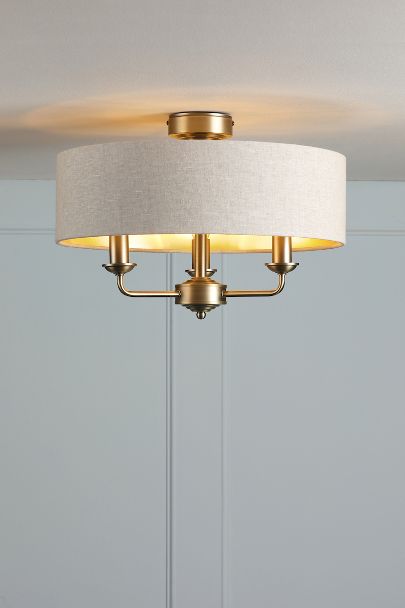 Home / Sorrento 3 Light Semi Flush Ceiling Light With Natural Shade - Matt Antique Brass - Laura Ashley