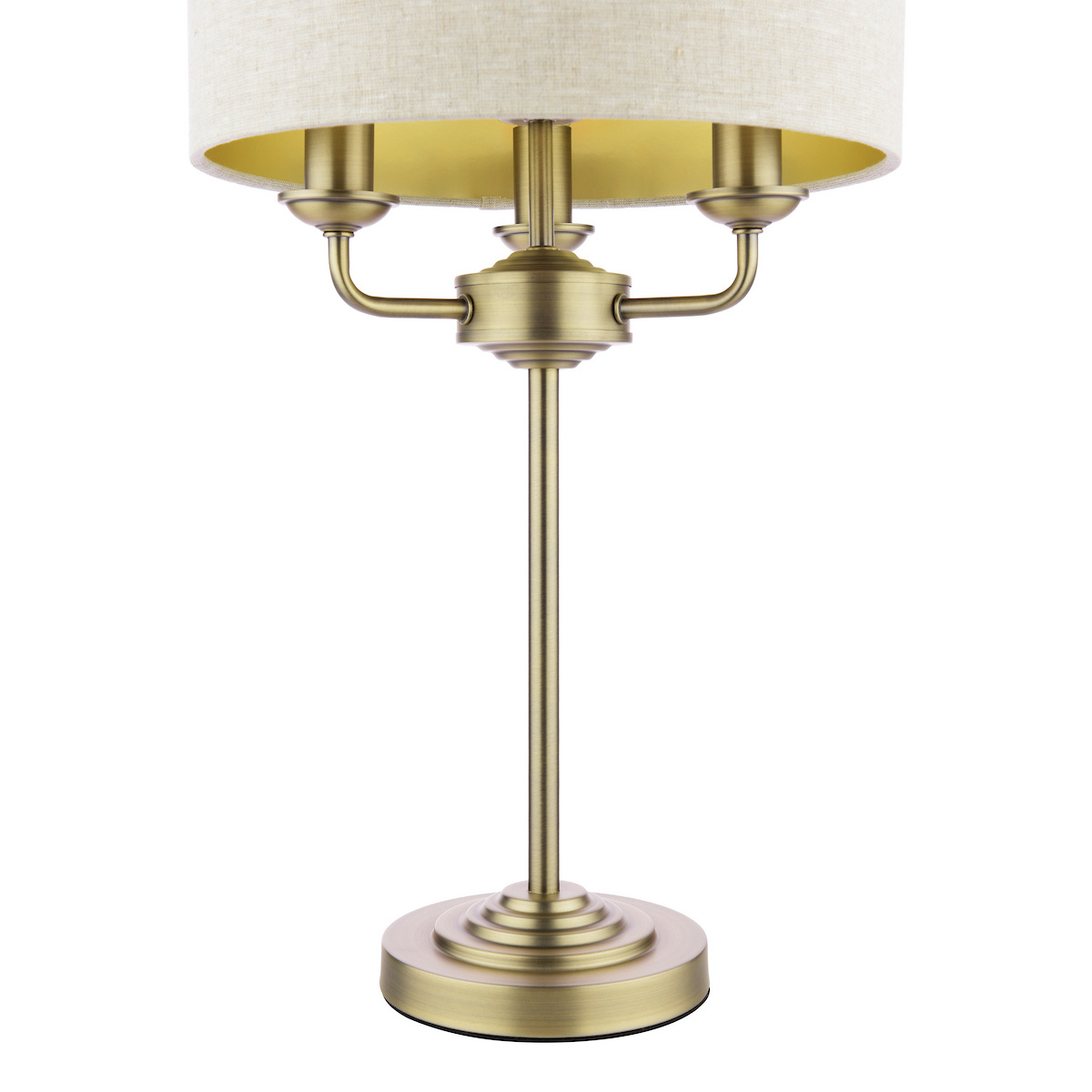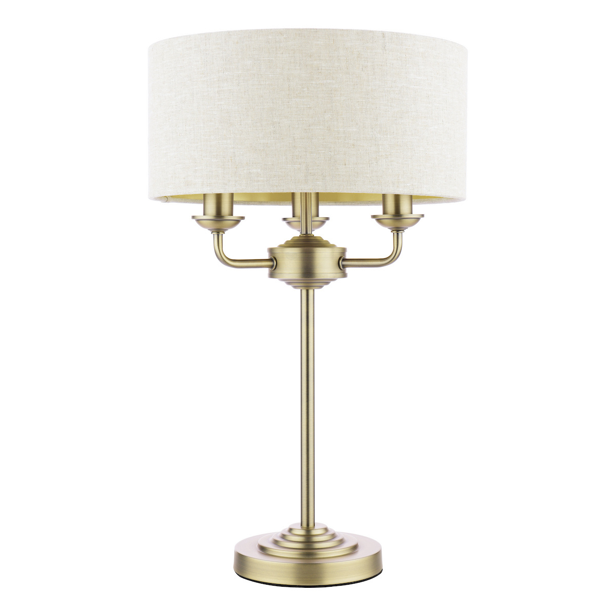 Home / Sorrento 3 Light Table Lamp with Natural Shade - Matt Antique Brass - Laura Ashley