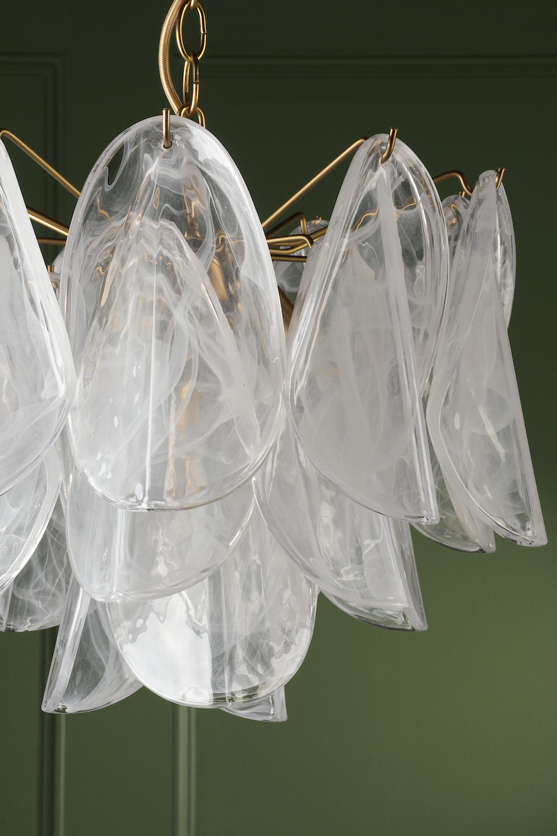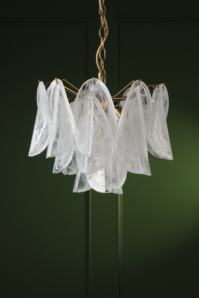 Home / Stannington 4 Light Ceiling Pendant - Matt Antique Brass and White Glass - Laura Ashley