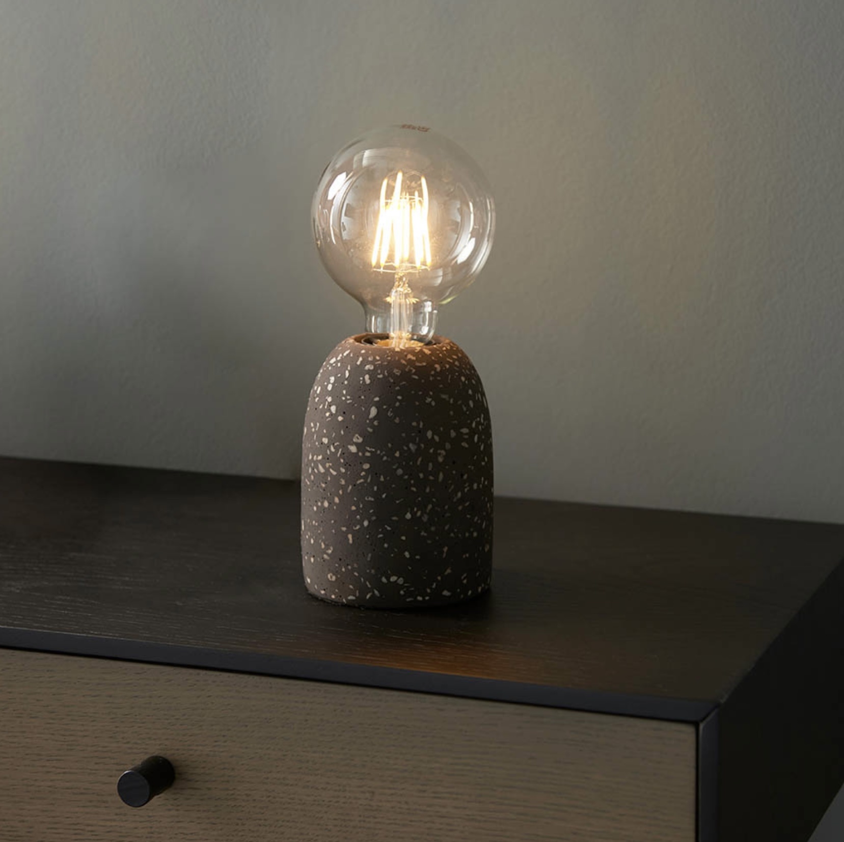 Transform interiors with these trendy Dark Terrazzo Table Lamp. Complete the designer look with one of our LED filament globe lamps.