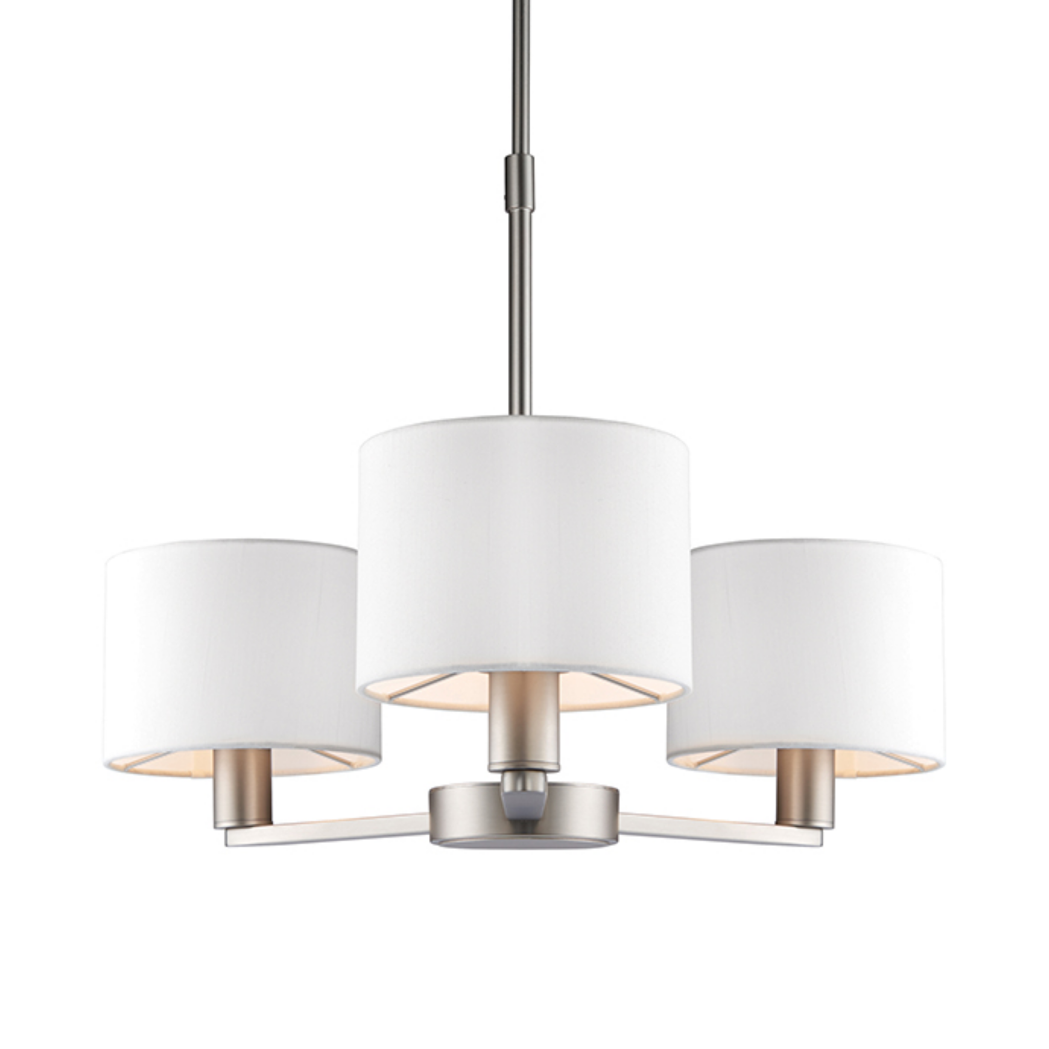 Home / Thomas - 3 Light Modern Hotel Style Chandelier - White Faux Silk & Matt Nickel