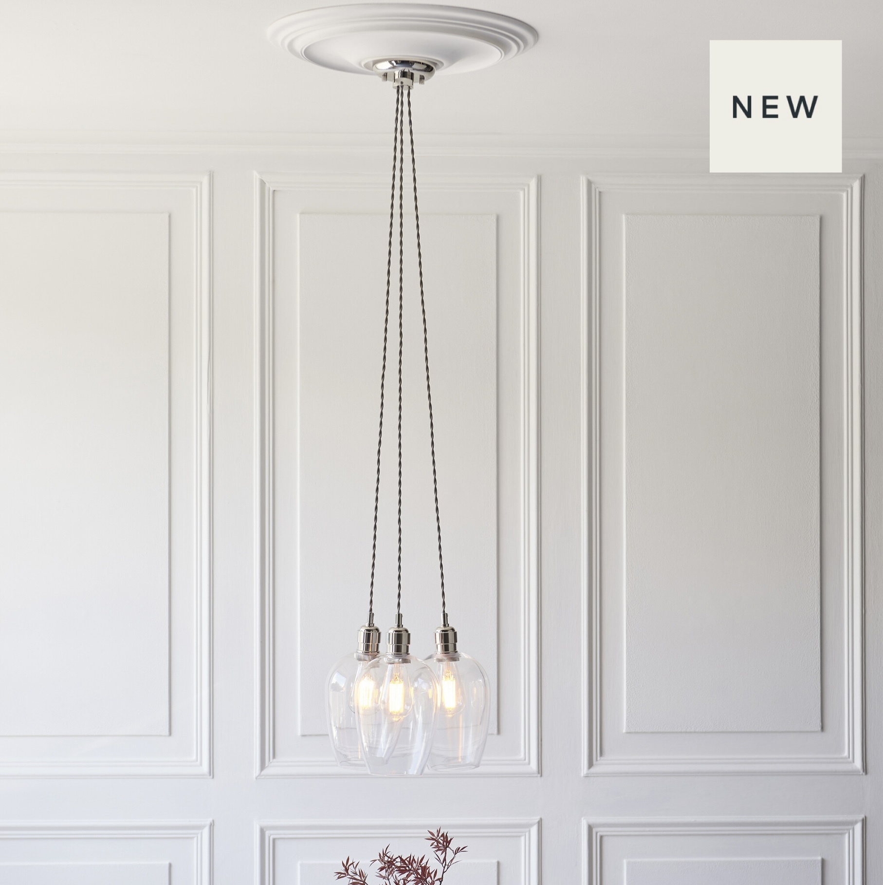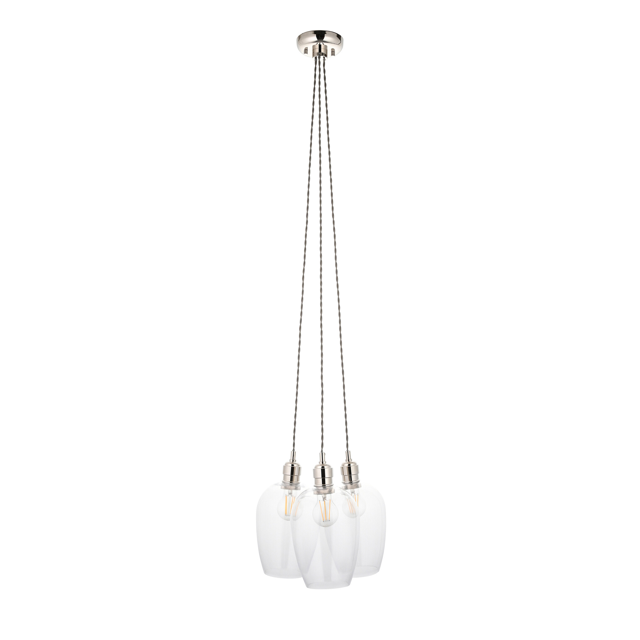 Crafted from polished nickel plated metalwork and high-quality clear blown glass shades, this pendant showcases beautiful detailing and a sense of quiet craftsmanship.